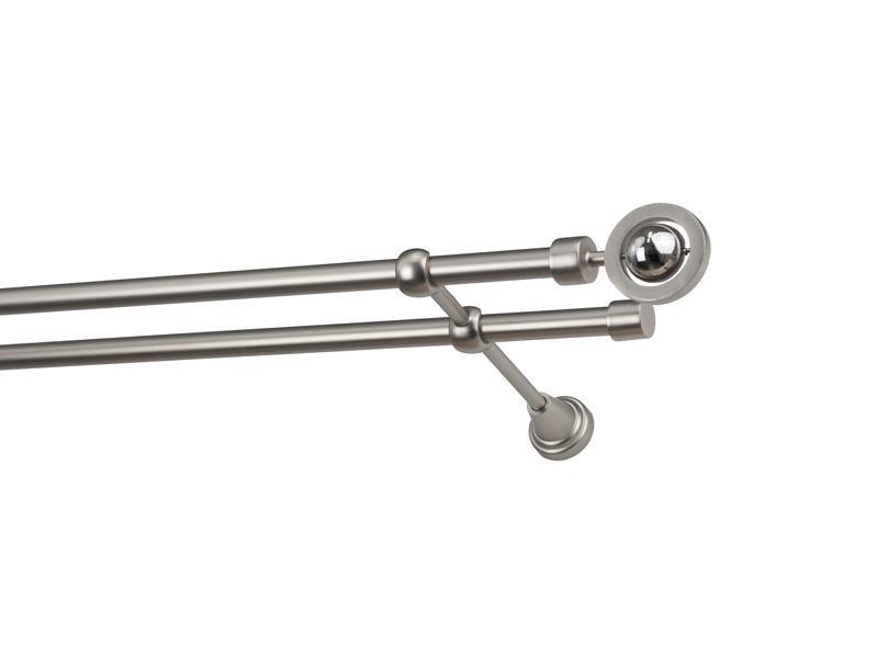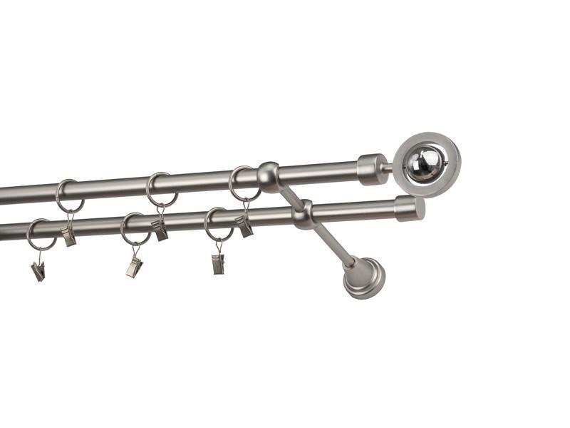 Dvouřadá garnýž s povrchovou úpravou - odstín satin (matné stříbro). Celokovová garnýž s kvalitní povrchovou úpravou - galvanické pokovování. Galvanické pokovování zabezpečuje vyšší povrchovou tvrdost, zvýšenú dolnost vůči poškrábání, hladký povrch. Dodávané jsou v kompletech.