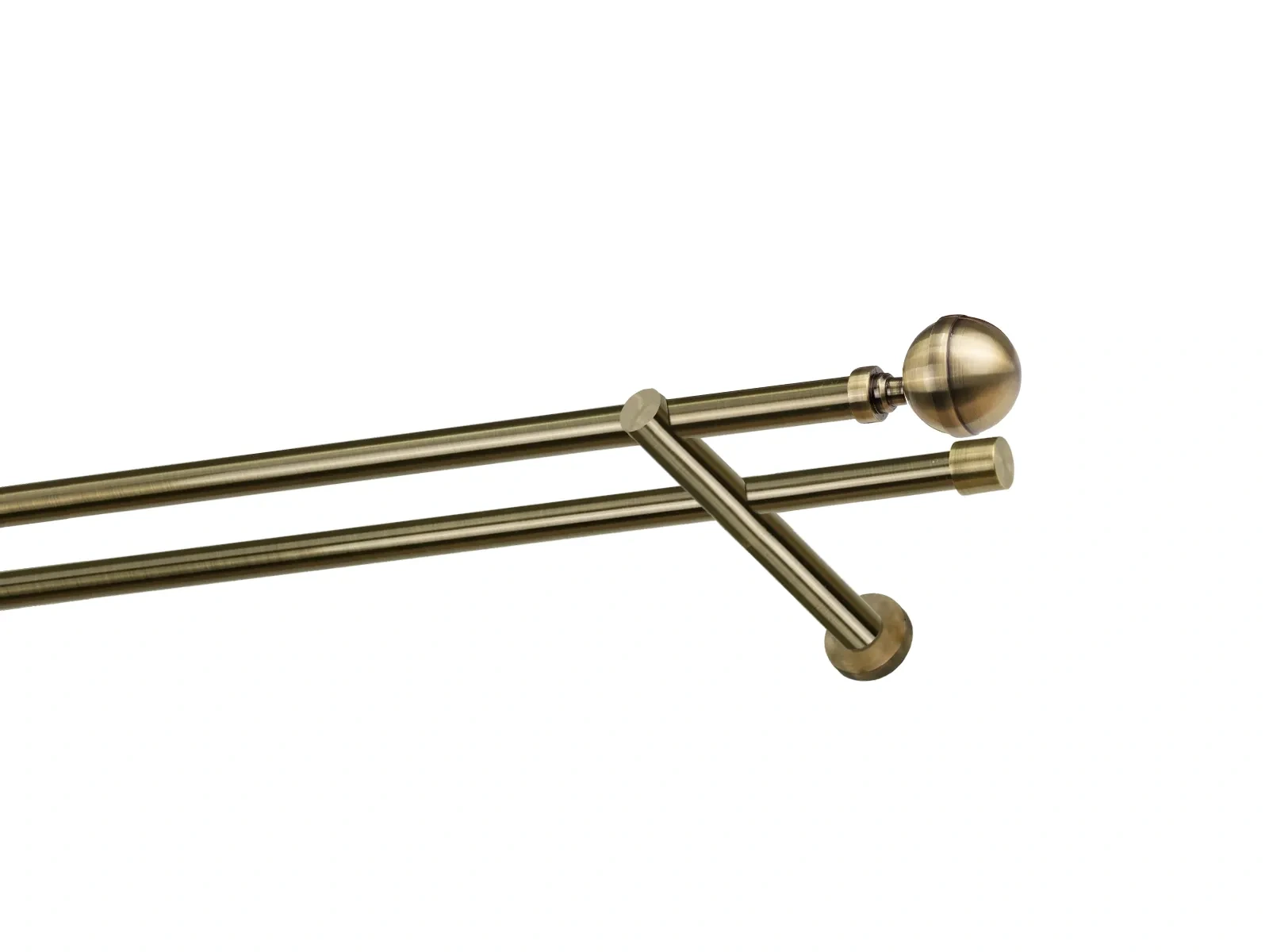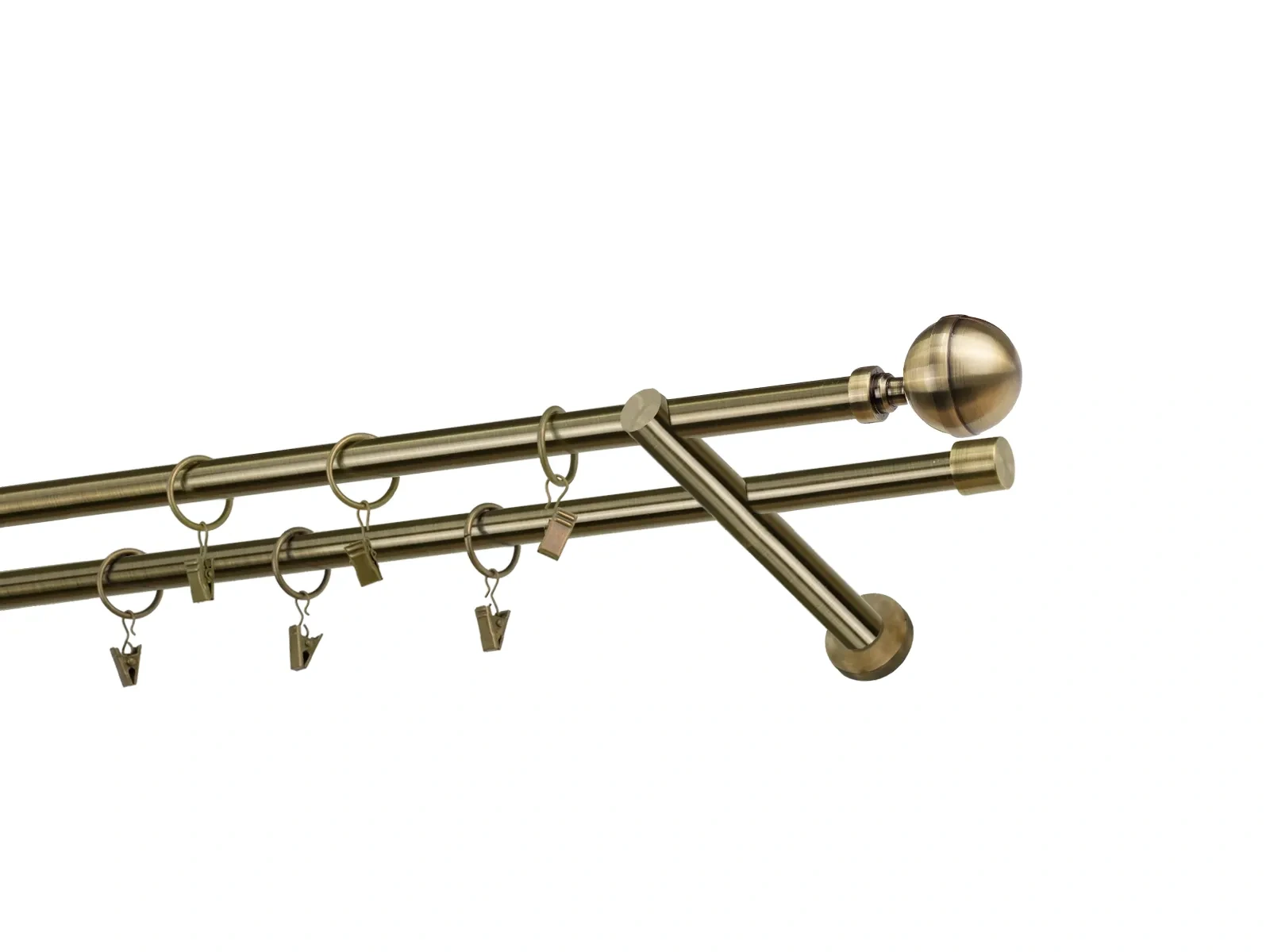 Dvouřadá garnýž s povrchovou úpravou - odstín antik (matné zlato). Celokovová garnýž s kvalitní povrchovou úpravou - galvanické pokovování. Galvanické pokovování zabezpečuje vyšší povrchovou tvrdost, zvýšenú dolnost vůči poškrábání, hladký povrch. Dodávané jsou v kompletech.