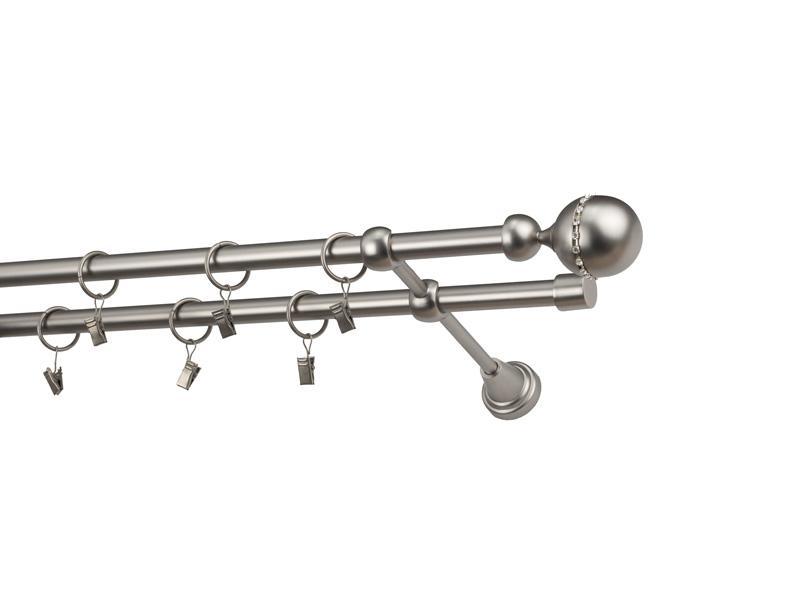 Dvouřadá garnýž s povrchovou úpravou - odstín satin (matné stříbro). Celokovová garnýž s kvalitní povrchovou úpravou - galvanické pokovování. Galvanické pokovování zabezpečuje vyšší povrchovou tvrdost, zvýšenú dolnost vůči poškrábání, hladký povrch. Dodávané jsou v kompletech.