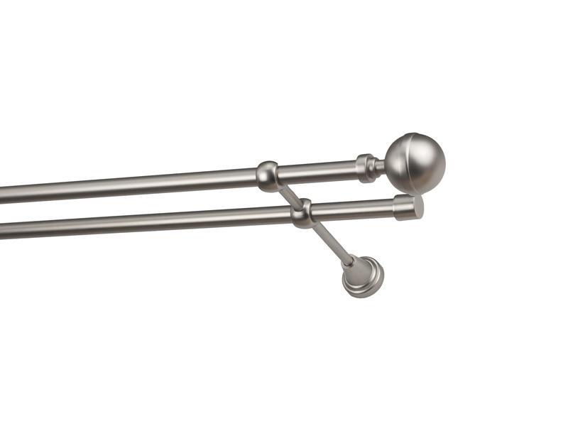 Dvouřadá garnýž s povrchovou úpravou - odstín satin (matné stříbro). Celokovová garnýž s kvalitní povrchovou úpravou - galvanické pokovování. Galvanické pokovování zabezpečuje vyšší povrchovou tvrdost, zvýšenú dolnost vůči poškrábání, hladký povrch. Dodávané jsou v kompletech.