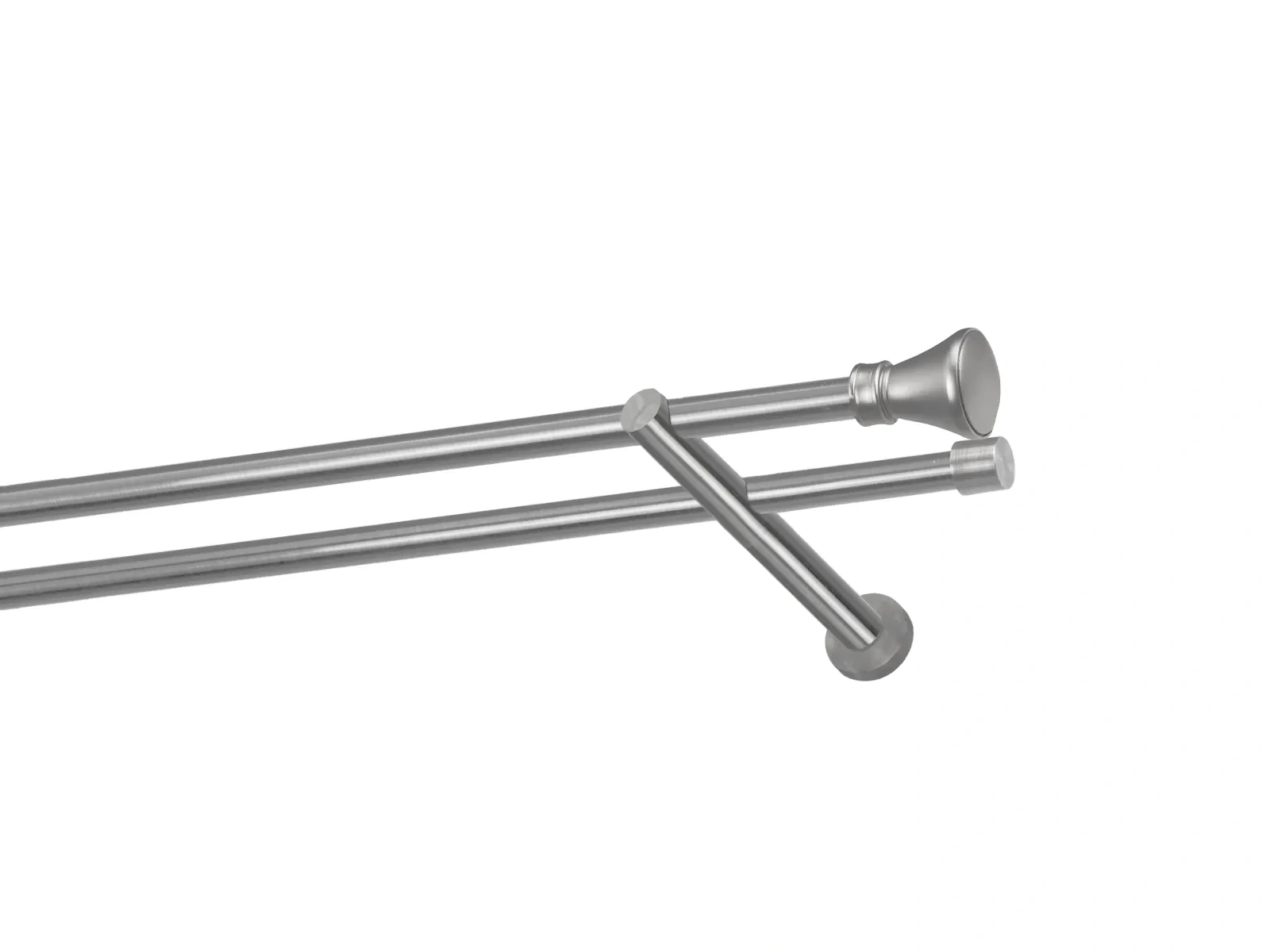 Dvouřadá garnýž s povrchovou úpravou - odstín satin (matné stříbro). Celokovová garnýž s kvalitní povrchovou úpravou - galvanické pokovování. Galvanické pokovování zabezpečuje vyšší povrchovou tvrdost, zvýšenú dolnost vůči poškrábání, hladký povrch. Dodávané jsou v kompletech.