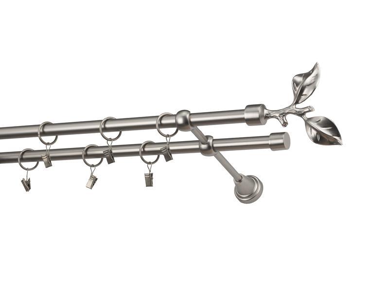 Dvouřadá garnýž s povrchovou úpravou - odstín satin (matné stříbro). Celokovová garnýž s kvalitní povrchovou úpravou - galvanické pokovování. Galvanické pokovování zabezpečuje vyšší povrchovou tvrdost, zvýšenú dolnost vůči poškrábání, hladký povrch. Dodávané jsou v kompletech.