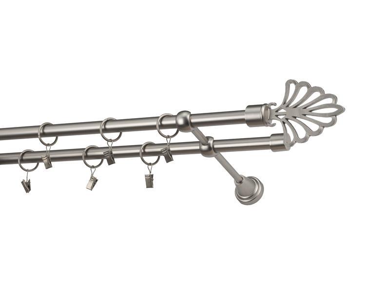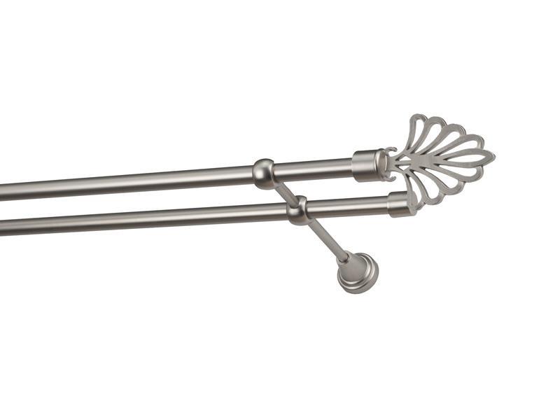 Dvouřadá garnýž s povrchovou úpravou - odstín satin (matné stříbro). Celokovová garnýž s kvalitní povrchovou úpravou - galvanické pokovování. Galvanické pokovování zabezpečuje vyšší povrchovou tvrdost, zvýšenú dolnost vůči poškrábání, hladký povrch. Dodávané jsou v kompletech.