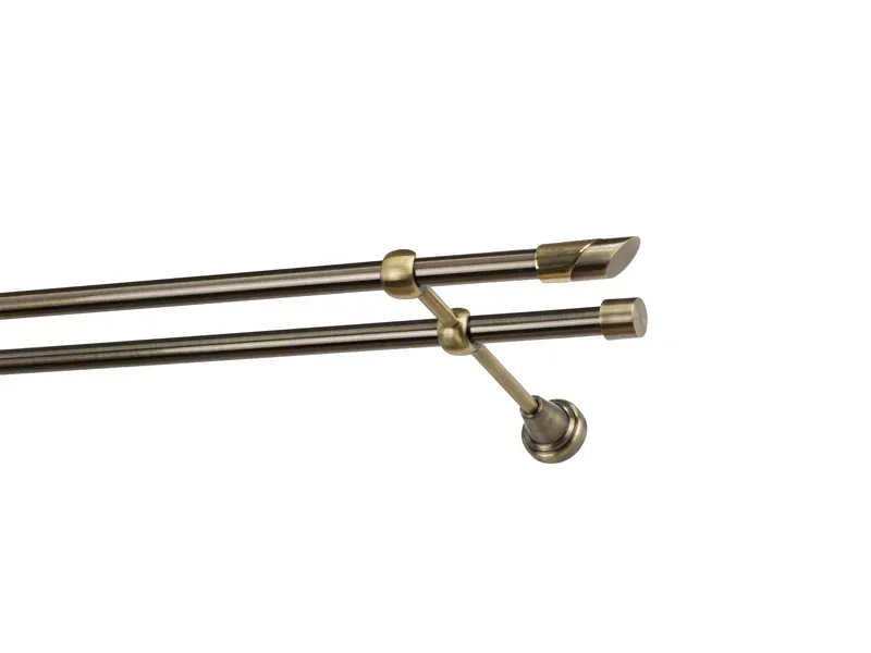 Dvouřadá garnýž s povrchovou úpravou - odstín antik (matné zlato). Celokovová garnýž s kvalitní povrchovou úpravou - galvanické pokovování. Galvanické pokovování zabezpečuje vyšší povrchovou tvrdost, zvýšenú dolnost vůči poškrábání, hladký povrch. Dodávané jsou v kompletech.