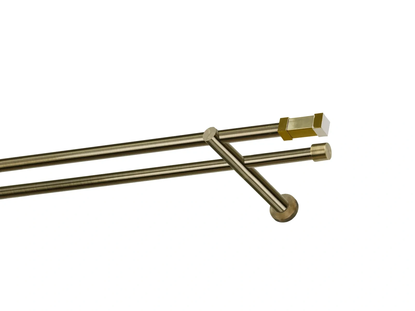 Dvouřadá garnýž s povrchovou úpravou - odstín antik (matné zlato). Celokovová garnýž s kvalitní povrchovou úpravou - galvanické pokovování. Galvanické pokovování zabezpečuje vyšší povrchovou tvrdost, zvýšenú dolnost vůči poškrábání, hladký povrch. Dodávané jsou v kompletech.