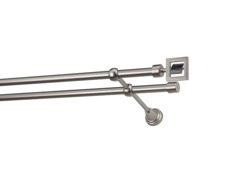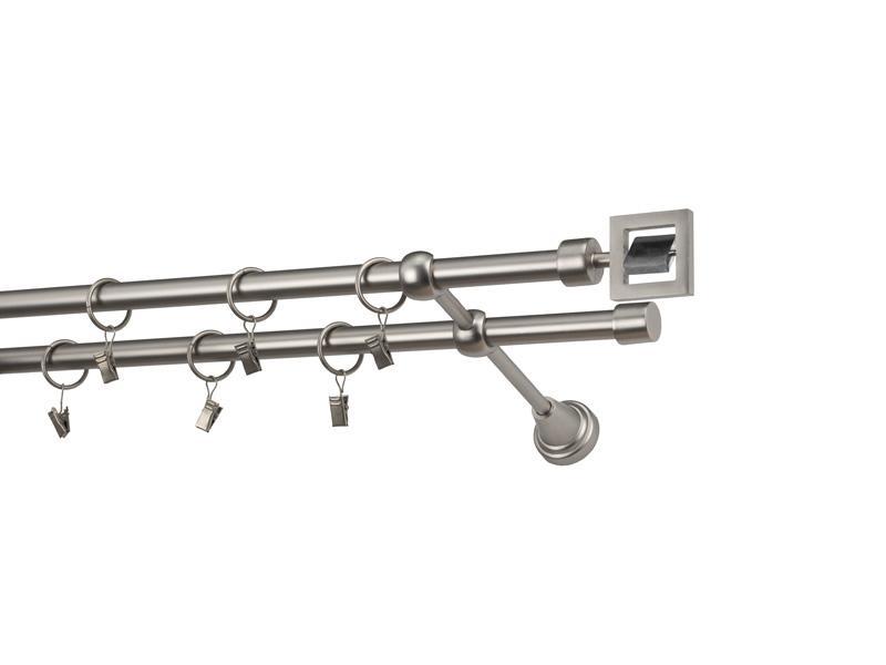 Dvouřadá garnýž s povrchovou úpravou - odstín satin (matné stříbro). Celokovová garnýž s kvalitní povrchovou úpravou - galvanické pokovování. Galvanické pokovování zabezpečuje vyšší povrchovou tvrdost, zvýšenú dolnost vůči poškrábání, hladký povrch. Dodávané jsou v kompletech.