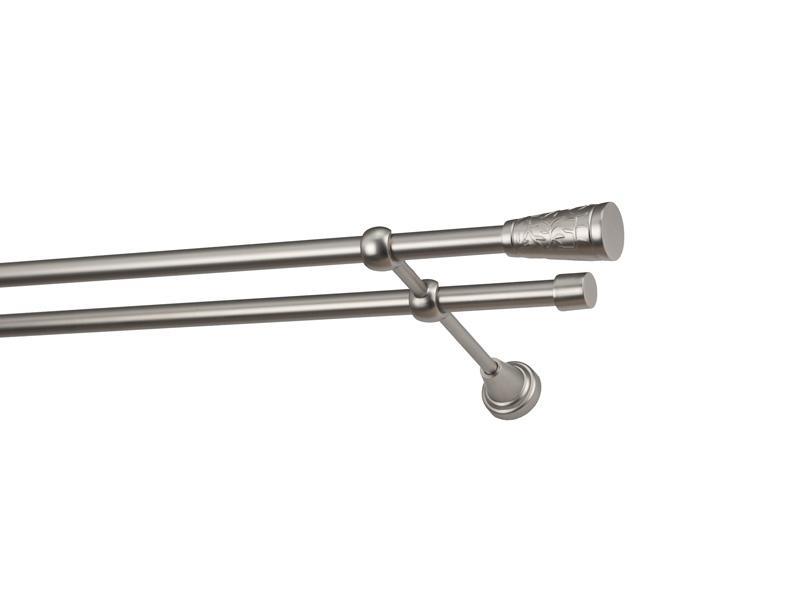 Dvouřadá garnýž s povrchovou úpravou - odstín satin (matné stříbro). Celokovová garnýž s kvalitní povrchovou úpravou - galvanické pokovování. Galvanické pokovování zabezpečuje vyšší povrchovou tvrdost, zvýšenú dolnost vůči poškrábání, hladký povrch. Dodávané jsou v kompletech.
