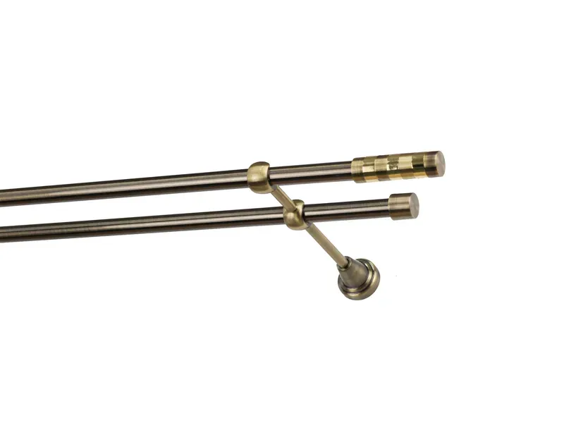 Dvouřadá garnýž s povrchovou úpravou - odstín antik (matné zlato). Celokovová garnýž s kvalitní povrchovou úpravou - galvanické pokovování. Galvanické pokovování zabezpečuje vyšší povrchovou tvrdost, zvýšenú dolnost vůči poškrábání, hladký povrch. Dodávané jsou v kompletech.