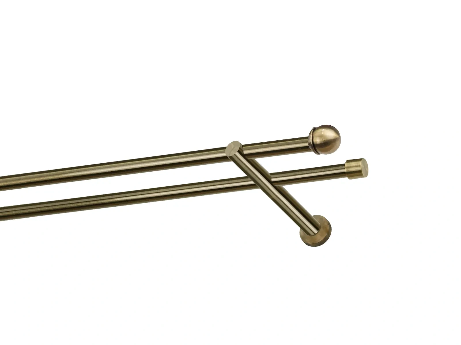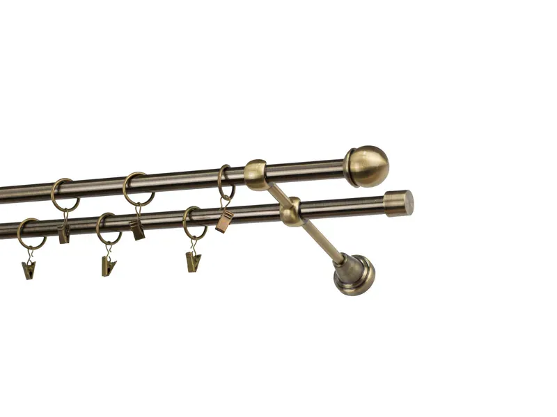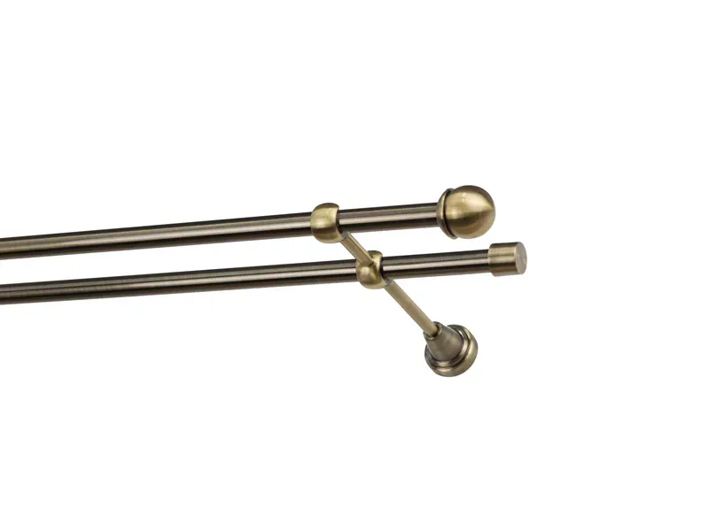 Dvouřadá garnýž s povrchovou úpravou - odstín antik (matné zlato). Celokovová garnýž s kvalitní povrchovou úpravou - galvanické pokovování. Galvanické pokovování zabezpečuje vyšší povrchovou tvrdost, zvýšenú dolnost vůči poškrábání, hladký povrch. Dodávané jsou v kompletech.