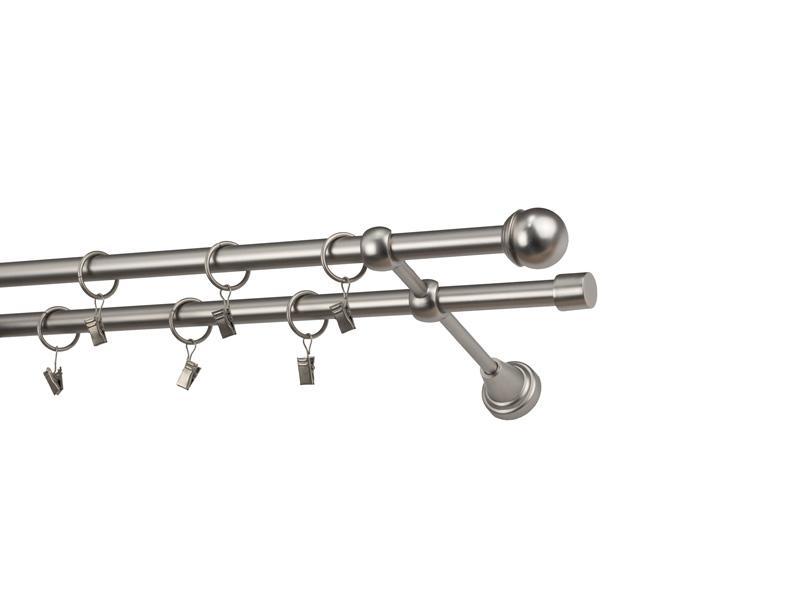 Dvouřadá garnýž s povrchovou úpravou - odstín satin (matné stříbro). Celokovová garnýž s kvalitní povrchovou úpravou - galvanické pokovování. Galvanické pokovování zabezpečuje vyšší povrchovou tvrdost, zvýšenú dolnost vůči poškrábání, hladký povrch. Dodávané jsou v kompletech.
