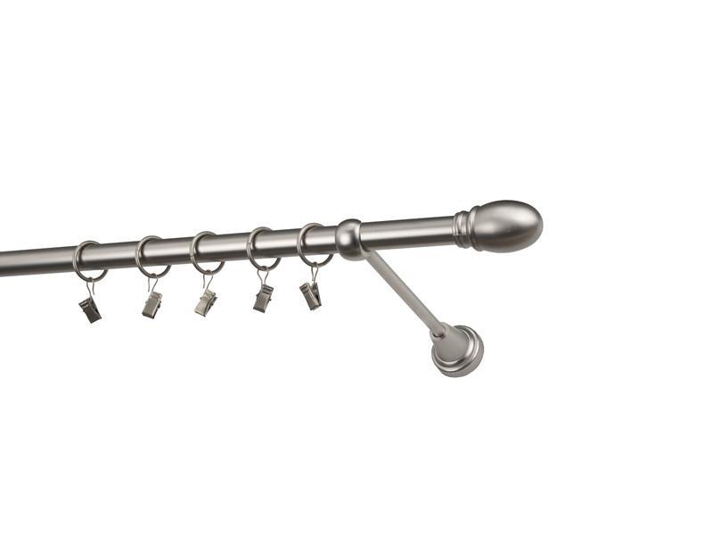 Jednořadá garnýž s povrchovou úpravou - odstín satin (matné stříbro). Celokovová garnýž s kvalitní povrchovou úpravou - galvanické pokovování. Galvanické pokovování zabezpečuje vyšší povrchovou tvrdost, zvýšenú dolnost vůči poškrábání, hladký povrch. Dodávané jsou v kompletech.
