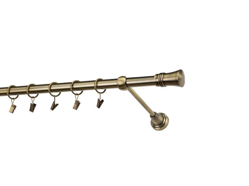 Jednořadá garnýž s povrchovou úpravou - odstín antik (matné zlato). Celokovová garnýž s kvalitní povrchovou úpravou - galvanické pokovování. Galvanické pokovování zabezpečuje vyšší povrchovou tvrdost, zvýšenú dolnost vůči poškrábání, hladký povrch. Dodávané jsou v kompletech.