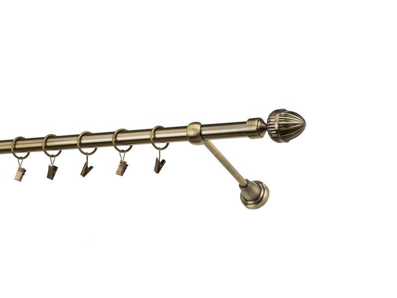 Jednořadá garnýž s povrchovou úpravou - odstín antik (matné zlato). Celokovová garnýž s kvalitní povrchovou úpravou - galvanické pokovování. Galvanické pokovování zabezpečuje vyšší povrchovou tvrdost, zvýšenú dolnost vůči poškrábání, hladký povrch. Dodávané jsou v kompletech.