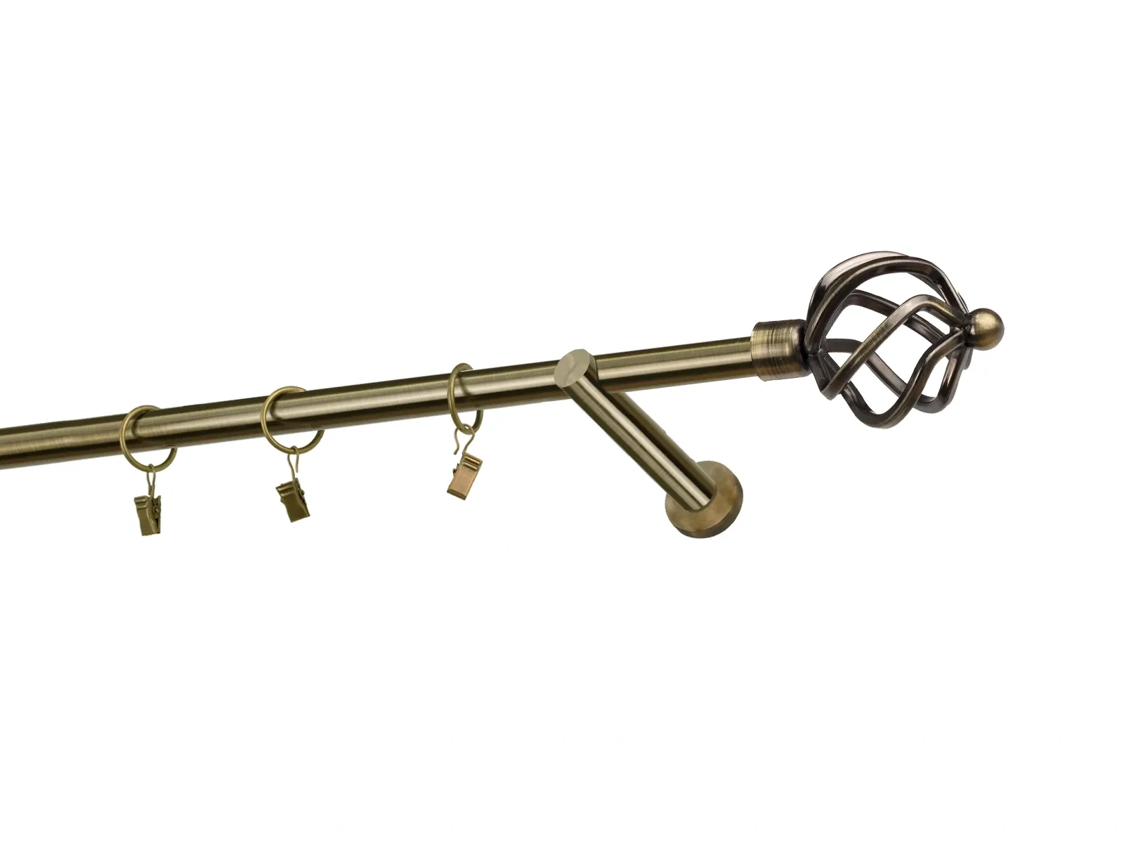 Jednořadá garnýž s povrchovou úpravou - odstín antik (matné zlato). Celokovová garnýž s kvalitní povrchovou úpravou - galvanické pokovování. Galvanické pokovování zabezpečuje vyšší povrchovou tvrdost, zvýšenú dolnost vůči poškrábání, hladký povrch. Dodávané jsou v kompletech.