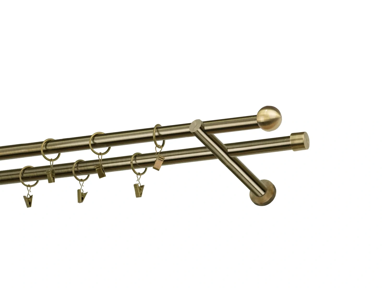 Dvouřadá garnýž s povrchovou úpravou - odstín antik (matné zlato). Celokovová garnýž s kvalitní povrchovou úpravou - galvanické pokovování. Galvanické pokovování zabezpečuje vyšší povrchovou tvrdost, zvýšenú dolnost vůči poškrábání, hladký povrch. Dodávané jsou v kompletech.