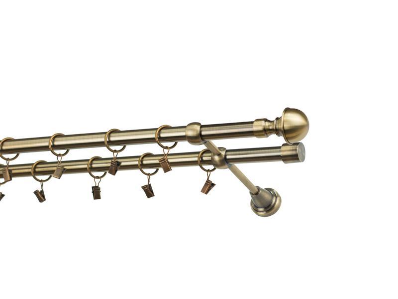 Dvouřadá garnýž s povrchovou úpravou - odstín antik (matné zlato). Celokovová garnýž s kvalitní povrchovou úpravou - galvanické pokovování. Galvanické pokovování zabezpečuje vyšší povrchovou tvrdost, zvýšenú dolnost vůči poškrábání, hladký povrch. Dodávané jsou v kompletech.