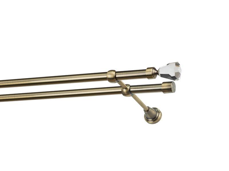 Dvouřadá garnýž s povrchovou úpravou - odstín antik (matné zlato). Celokovová garnýž s kvalitní povrchovou úpravou - galvanické pokovování. Galvanické pokovování zabezpečuje vyšší povrchovou tvrdost, zvýšenú dolnost vůči poškrábání, hladký povrch. Dodávané jsou v kompletech.