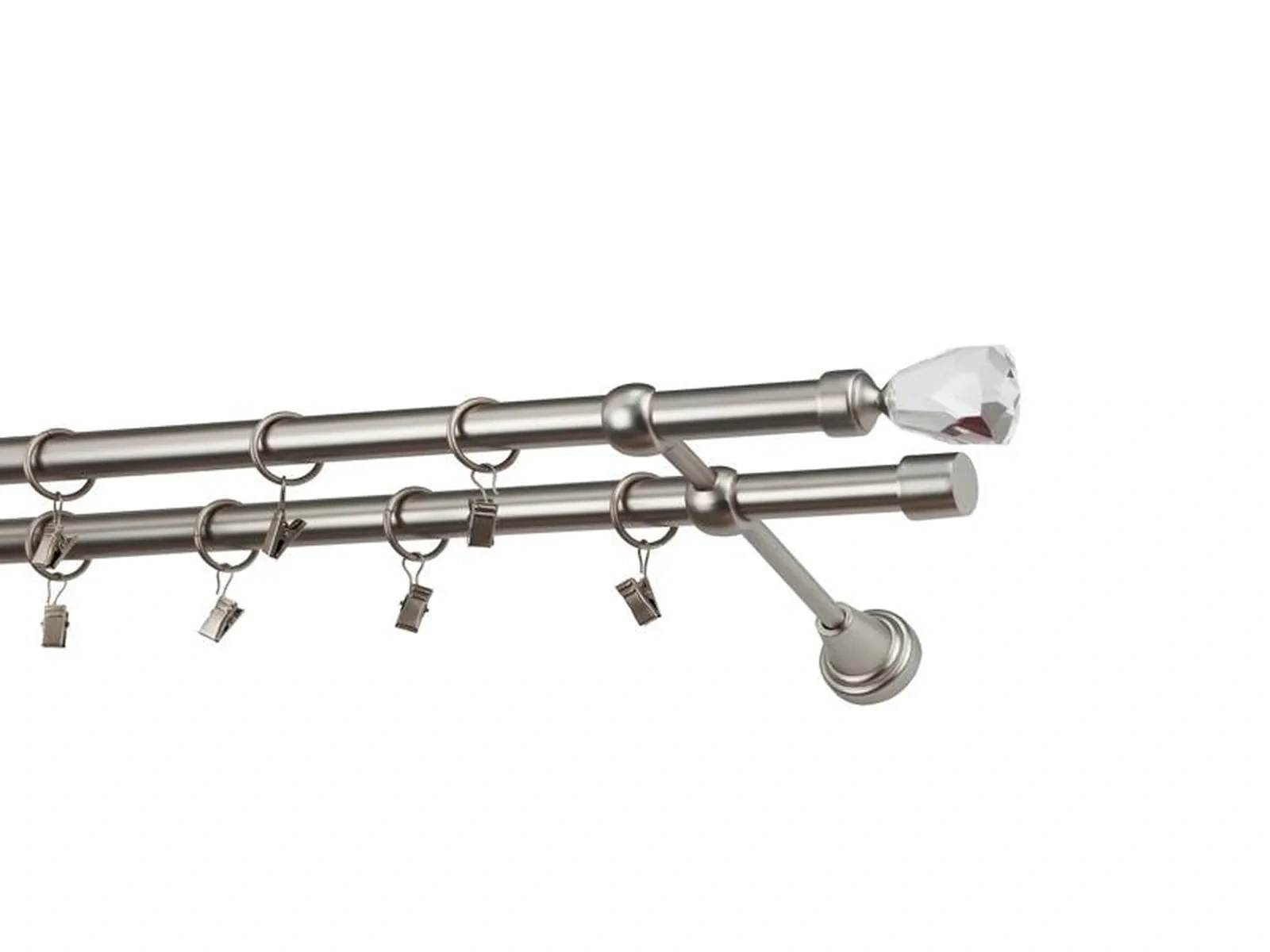 Dvouřadá garnýž s povrchovou úpravou - odstín satin (matné stříbro). Celokovová garnýž s kvalitní povrchovou úpravou - galvanické pokovování. Galvanické pokovování zabezpečuje vyšší povrchovou tvrdost, zvýšenú dolnost vůči poškrábání, hladký povrch. Dodávané jsou v kompletech.
