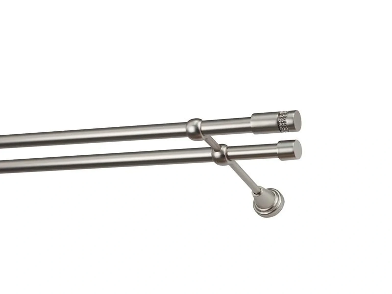 Dvouřadá garnýž s povrchovou úpravou - odstín satin (matné stříbro). Celokovová garnýž s kvalitní povrchovou úpravou - galvanické pokovování. Galvanické pokovování zabezpečuje vyšší povrchovou tvrdost, zvýšenú dolnost vůči poškrábání, hladký povrch. Dodávané jsou v kompletech.
