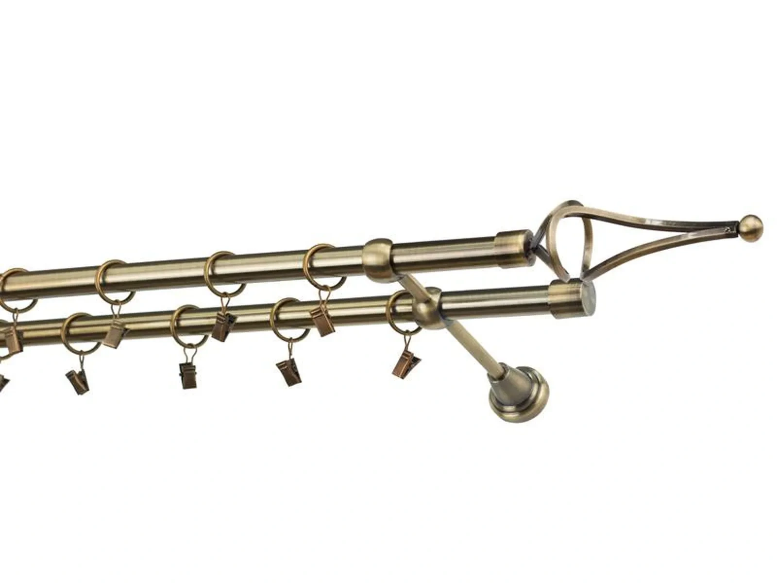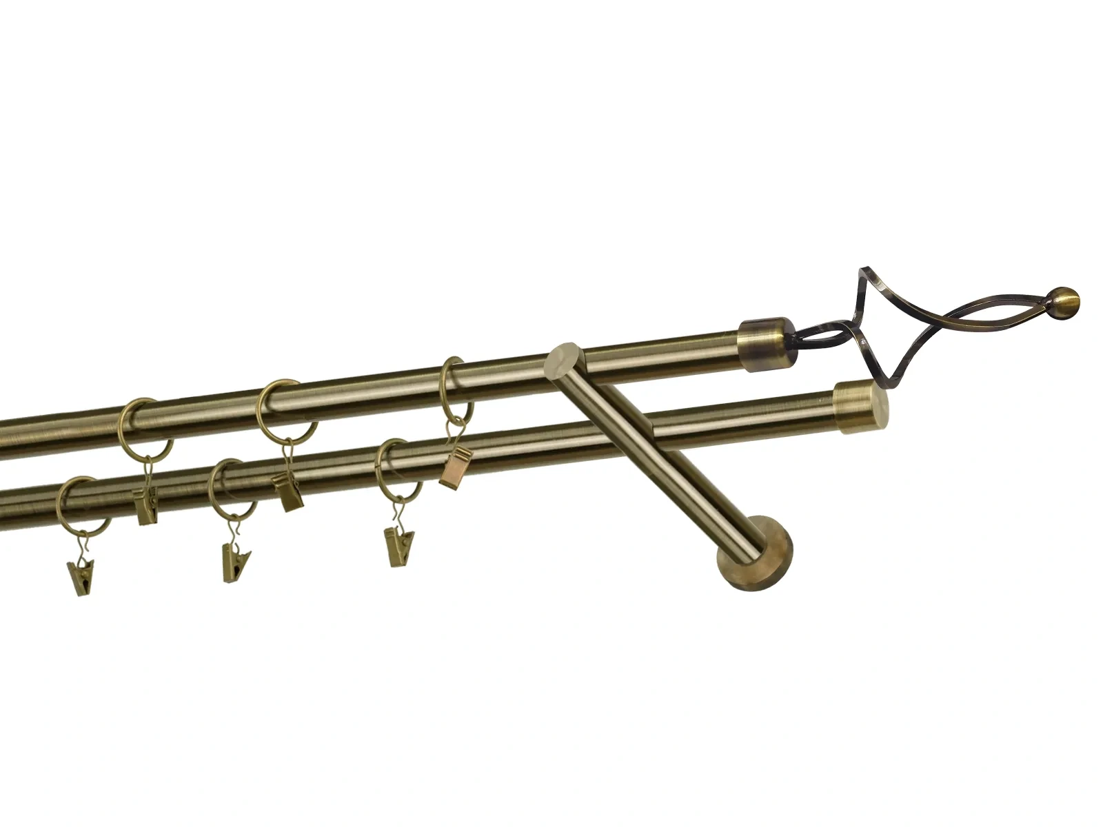 Dvouřadá garnýž s povrchovou úpravou - odstín antik (matné zlato). Celokovová garnýž s kvalitní povrchovou úpravou - galvanické pokovování. Galvanické pokovování zabezpečuje vyšší povrchovou tvrdost, zvýšenú dolnost vůči poškrábání, hladký povrch. Dodávané jsou v kompletech.