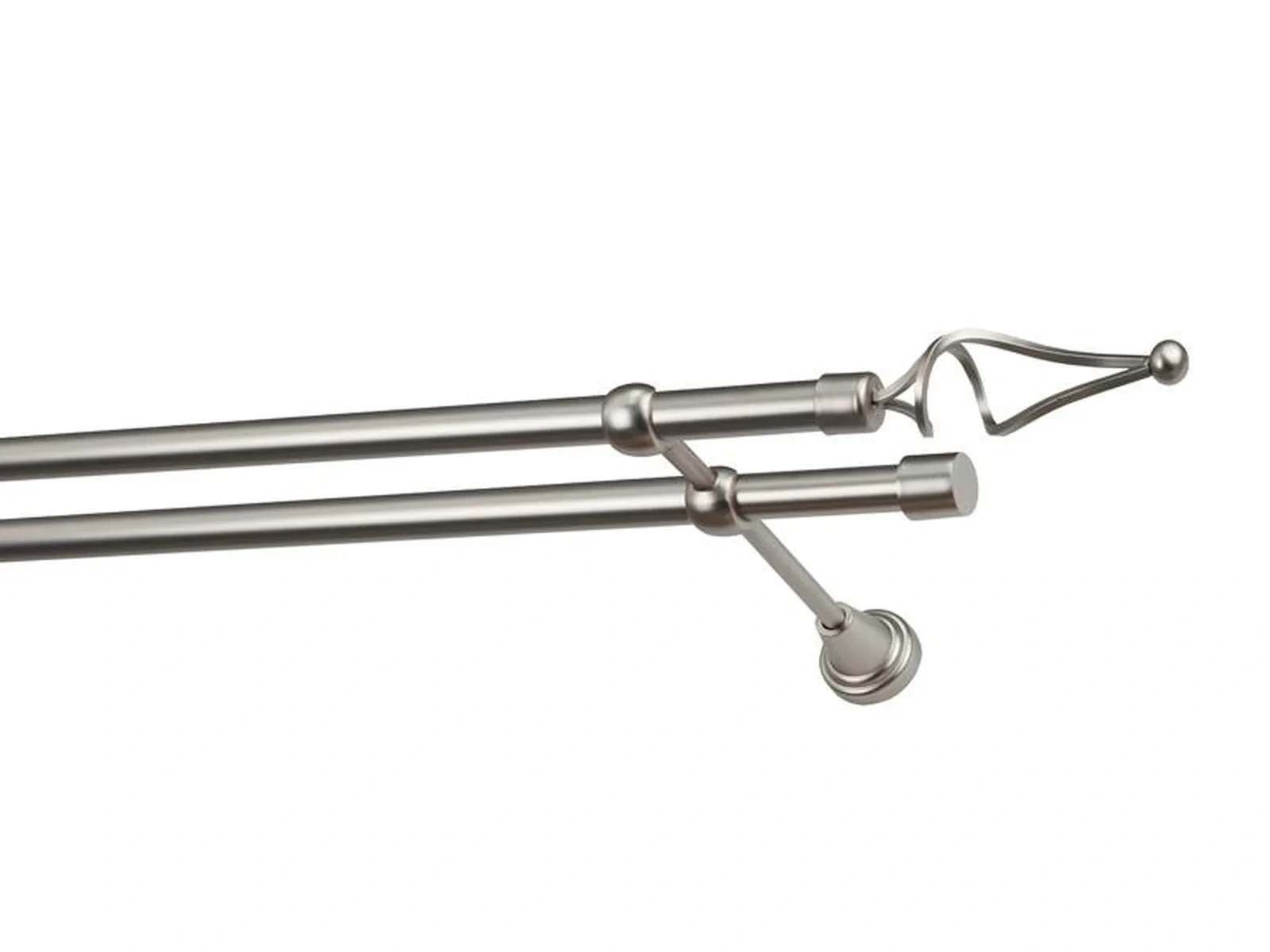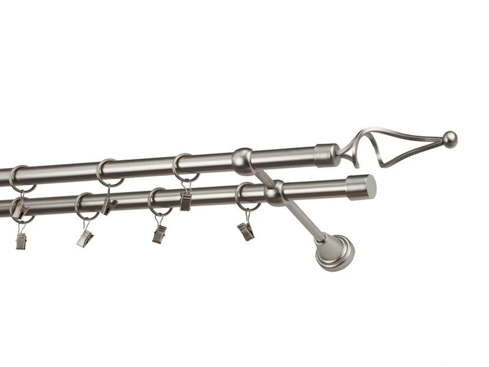 Dvouřadá garnýž s povrchovou úpravou - odstín satin (matné stříbro). Celokovová garnýž s kvalitní povrchovou úpravou - galvanické pokovování. Galvanické pokovování zabezpečuje vyšší povrchovou tvrdost, zvýšenú dolnost vůči poškrábání, hladký povrch. Dodávané jsou v kompletech.