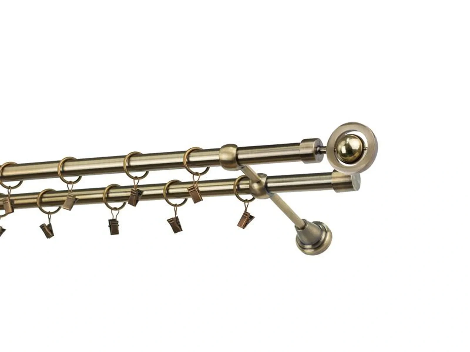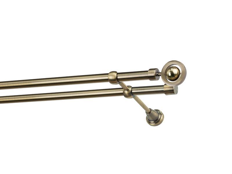 Dvouřadá garnýž s povrchovou úpravou - odstín antik (matné zlato). Celokovová garnýž s kvalitní povrchovou úpravou - galvanické pokovování. Galvanické pokovování zabezpečuje vyšší povrchovou tvrdost, zvýšenú dolnost vůči poškrábání, hladký povrch. Dodávané jsou v kompletech.