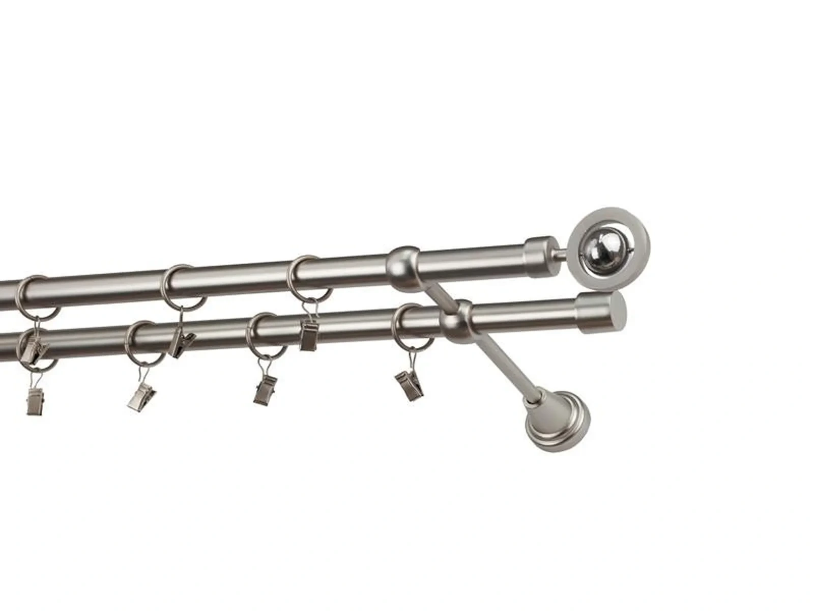 Dvouřadá garnýž s povrchovou úpravou - odstín satin (matné stříbro). Celokovová garnýž s kvalitní povrchovou úpravou - galvanické pokovování. Galvanické pokovování zabezpečuje vyšší povrchovou tvrdost, zvýšenú dolnost vůči poškrábání, hladký povrch. Dodávané jsou v kompletech.
