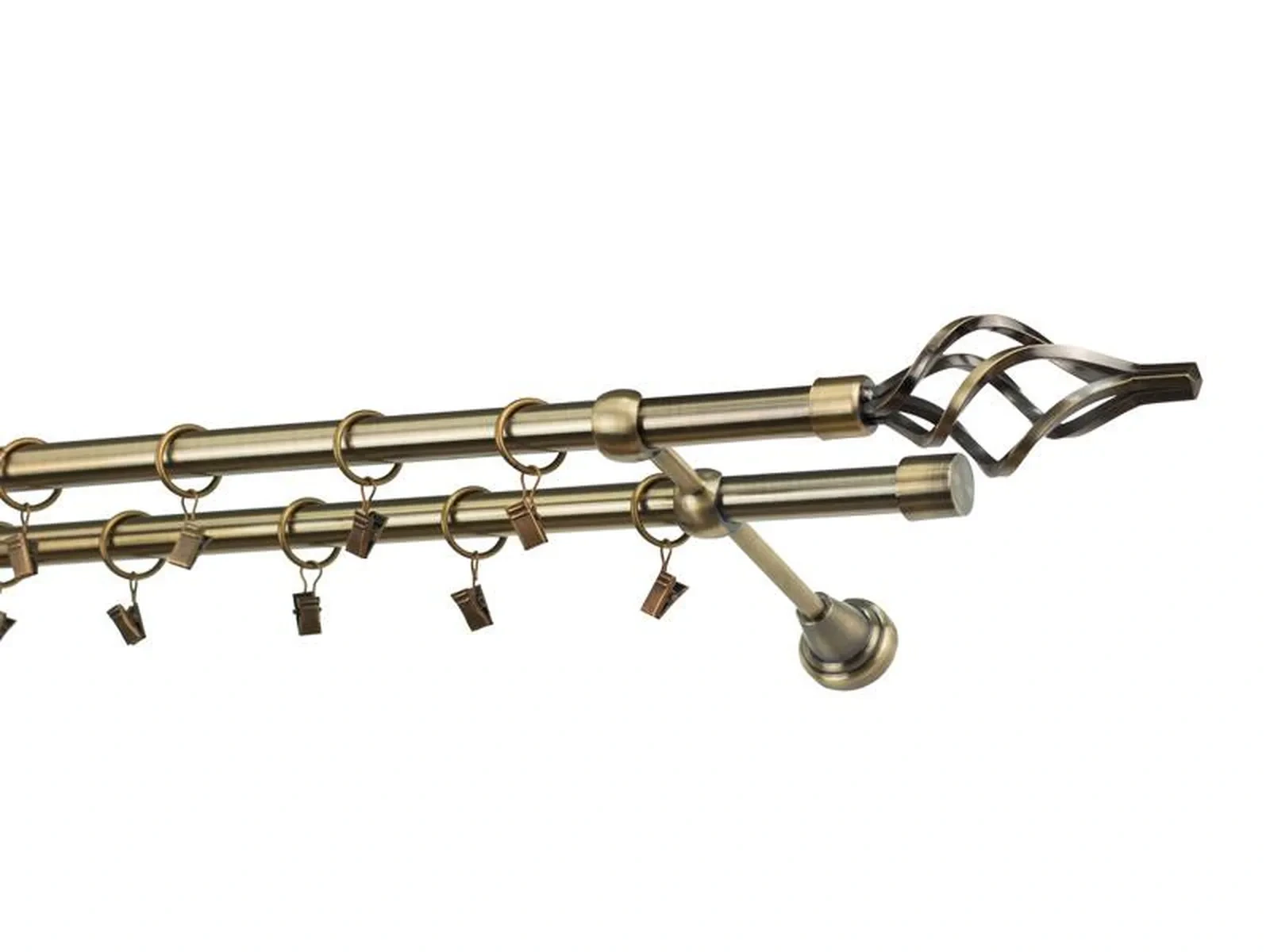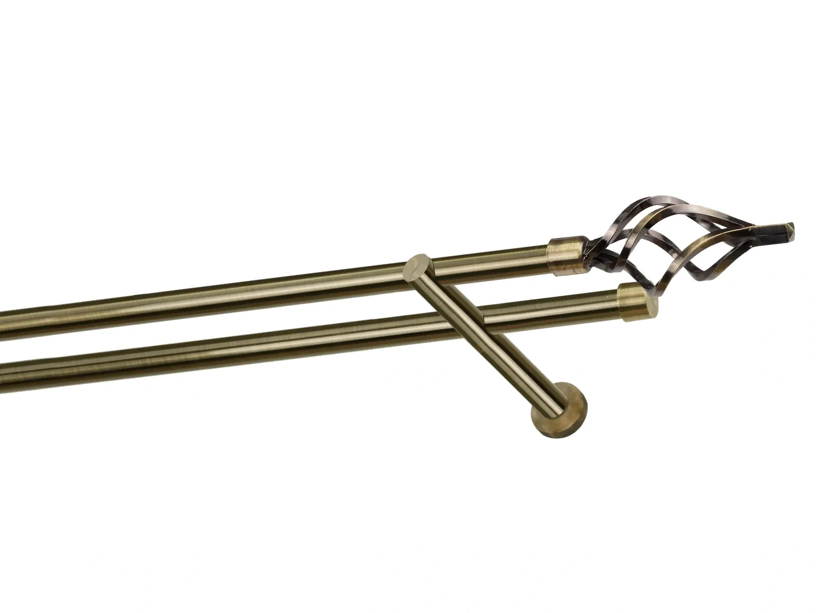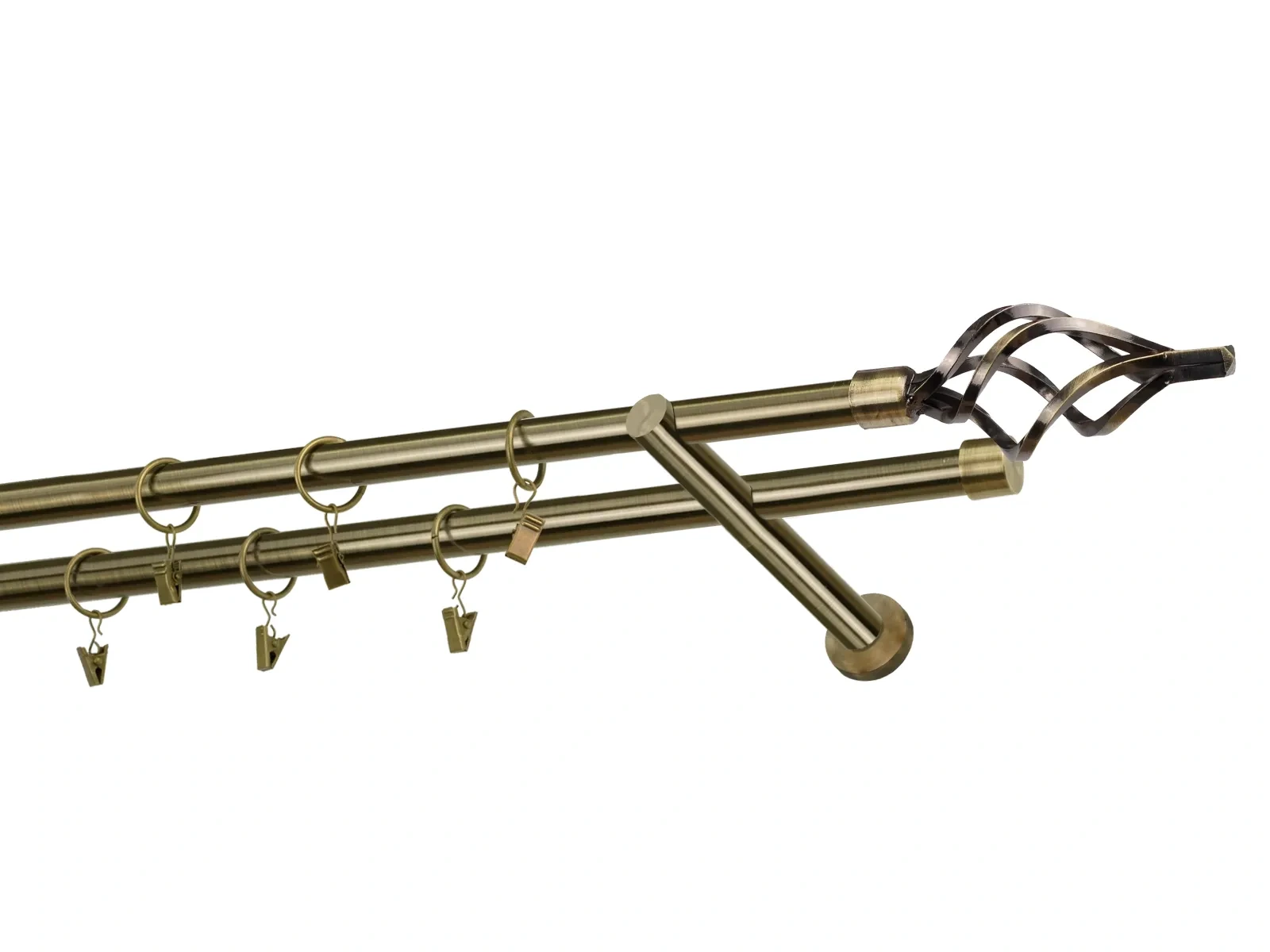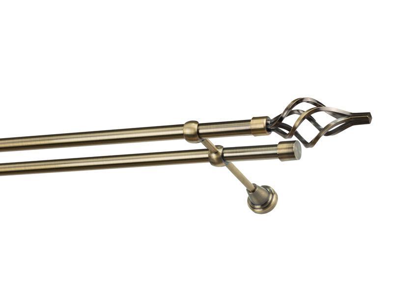 Dvouřadá garnýž s povrchovou úpravou - odstín antik (matné zlato). Celokovová garnýž s kvalitní povrchovou úpravou - galvanické pokovování. Galvanické pokovování zabezpečuje vyšší povrchovou tvrdost, zvýšenú dolnost vůči poškrábání, hladký povrch. Dodávané jsou v kompletech.