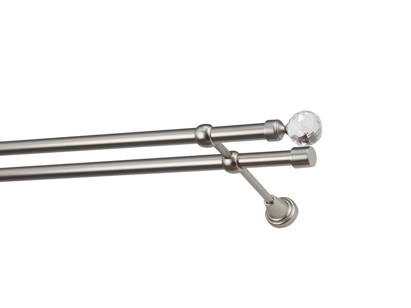 Dvouřadá garnýž s povrchovou úpravou - odstín satin (matné stříbro). Celokovová garnýž s kvalitní povrchovou úpravou - galvanické pokovování. Galvanické pokovování zabezpečuje vyšší povrchovou tvrdost, zvýšenú dolnost vůči poškrábání, hladký povrch. Dodávané jsou v kompletech.