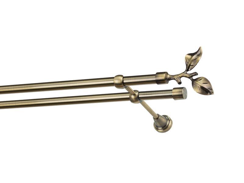 Dvouřadá garnýž s povrchovou úpravou - odstín antik (matné zlato). Celokovová garnýž s kvalitní povrchovou úpravou - galvanické pokovování. Galvanické pokovování zabezpečuje vyšší povrchovou tvrdost, zvýšenú dolnost vůči poškrábání, hladký povrch. Dodávané jsou v kompletech.