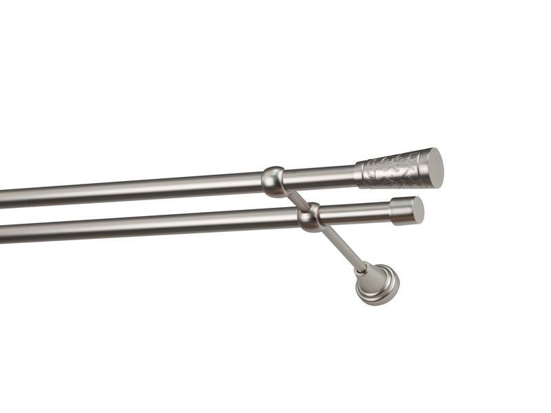 Dvouřadá garnýž s povrchovou úpravou - odstín satin (matné stříbro). Celokovová garnýž s kvalitní povrchovou úpravou - galvanické pokovování. Galvanické pokovování zabezpečuje vyšší povrchovou tvrdost, zvýšenú dolnost vůči poškrábání, hladký povrch. Dodávané jsou v kompletech.