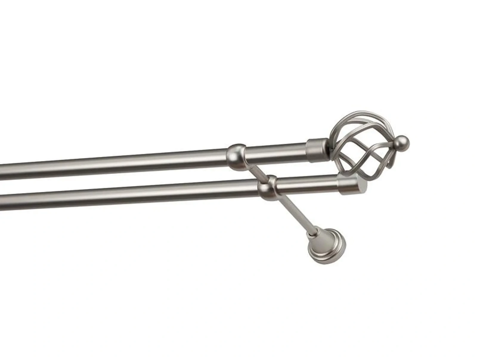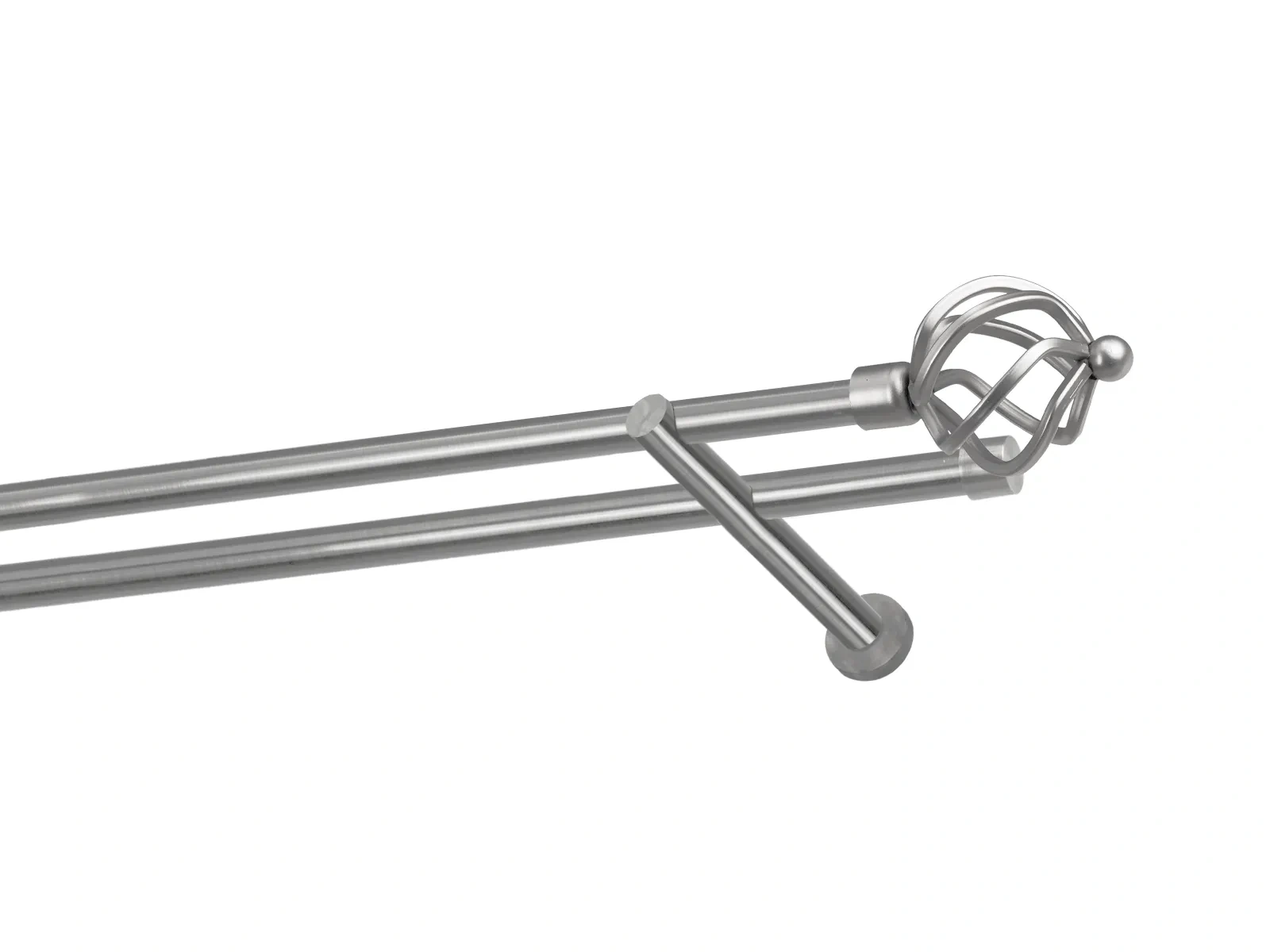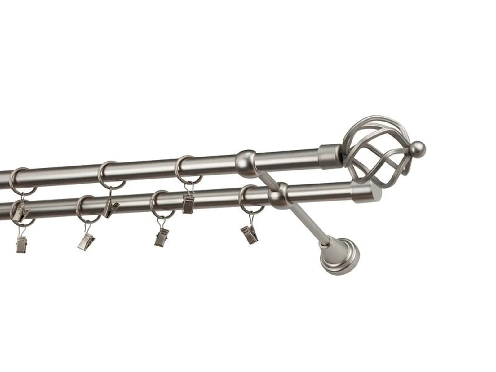 Dvouřadá garnýž s povrchovou úpravou - odstín satin (matné stříbro). Celokovová garnýž s kvalitní povrchovou úpravou - galvanické pokovování. Galvanické pokovování zabezpečuje vyšší povrchovou tvrdost, zvýšenú dolnost vůči poškrábání, hladký povrch. Dodávané jsou v kompletech.
