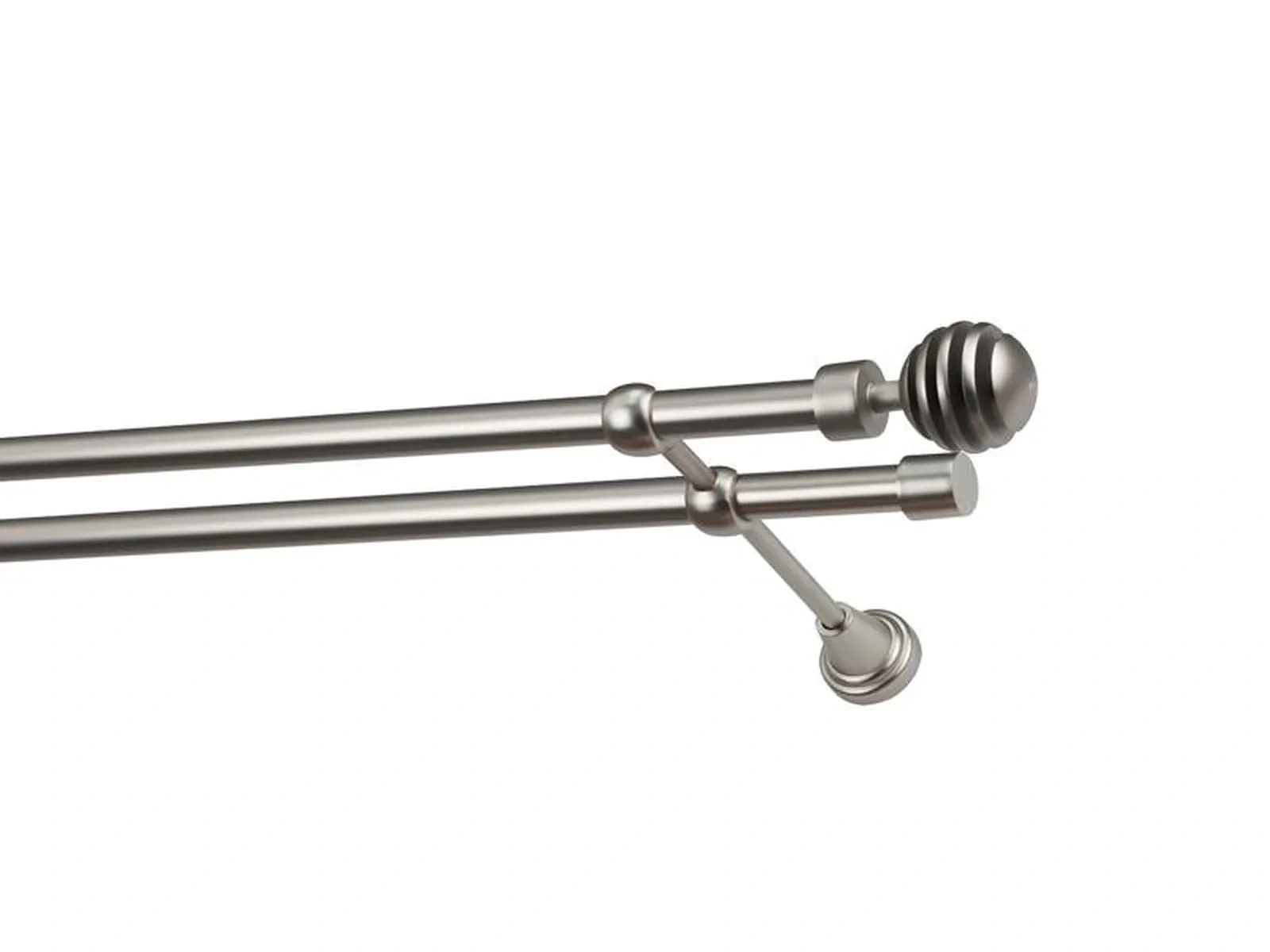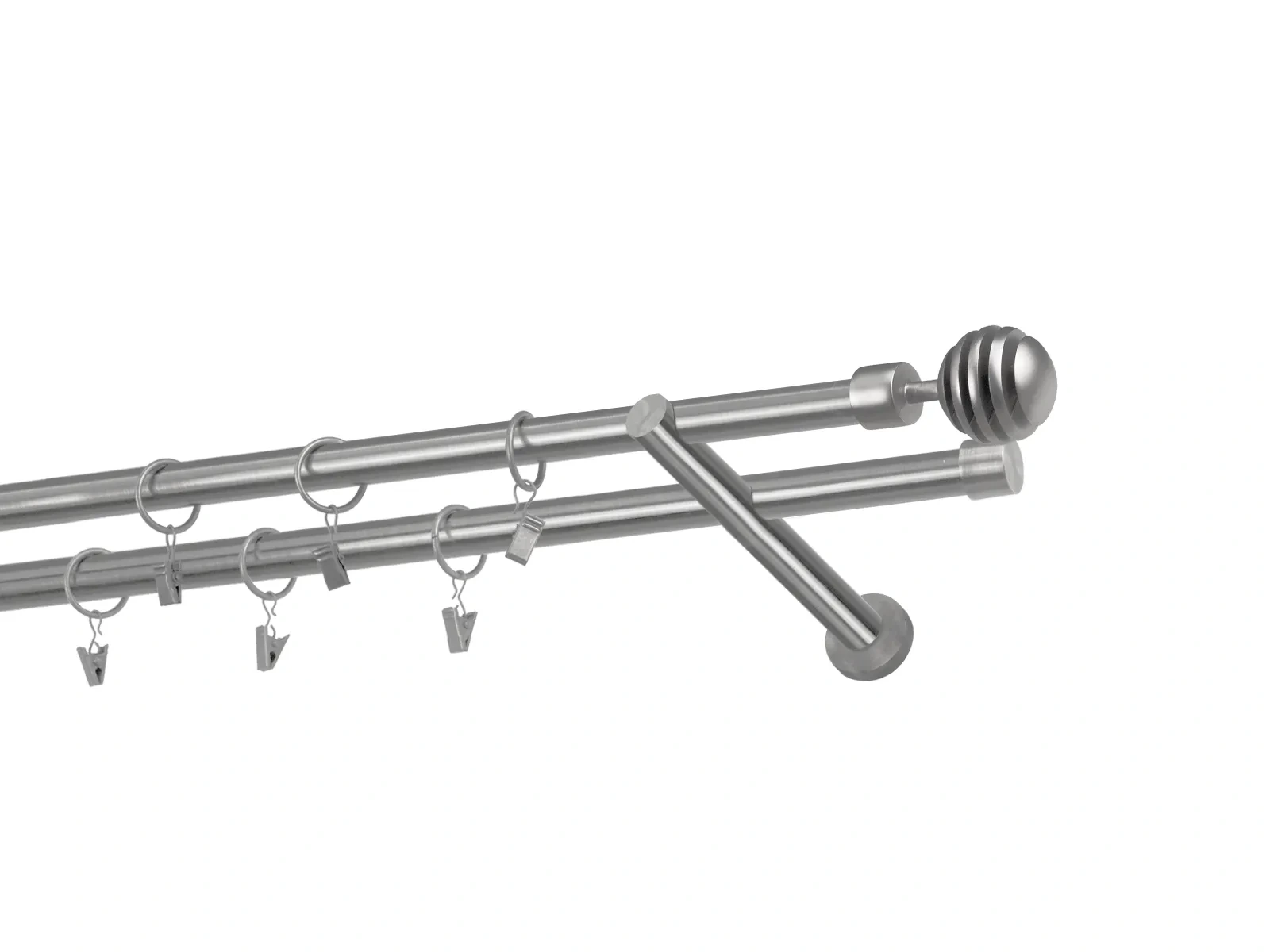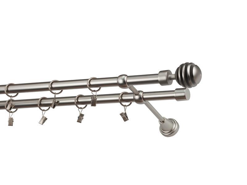 Dvouřadá garnýž s povrchovou úpravou - odstín satin (matné stříbro). Celokovová garnýž s kvalitní povrchovou úpravou - galvanické pokovování. Galvanické pokovování zabezpečuje vyšší povrchovou tvrdost, zvýšenú dolnost vůči poškrábání, hladký povrch. Dodávané jsou v kompletech.