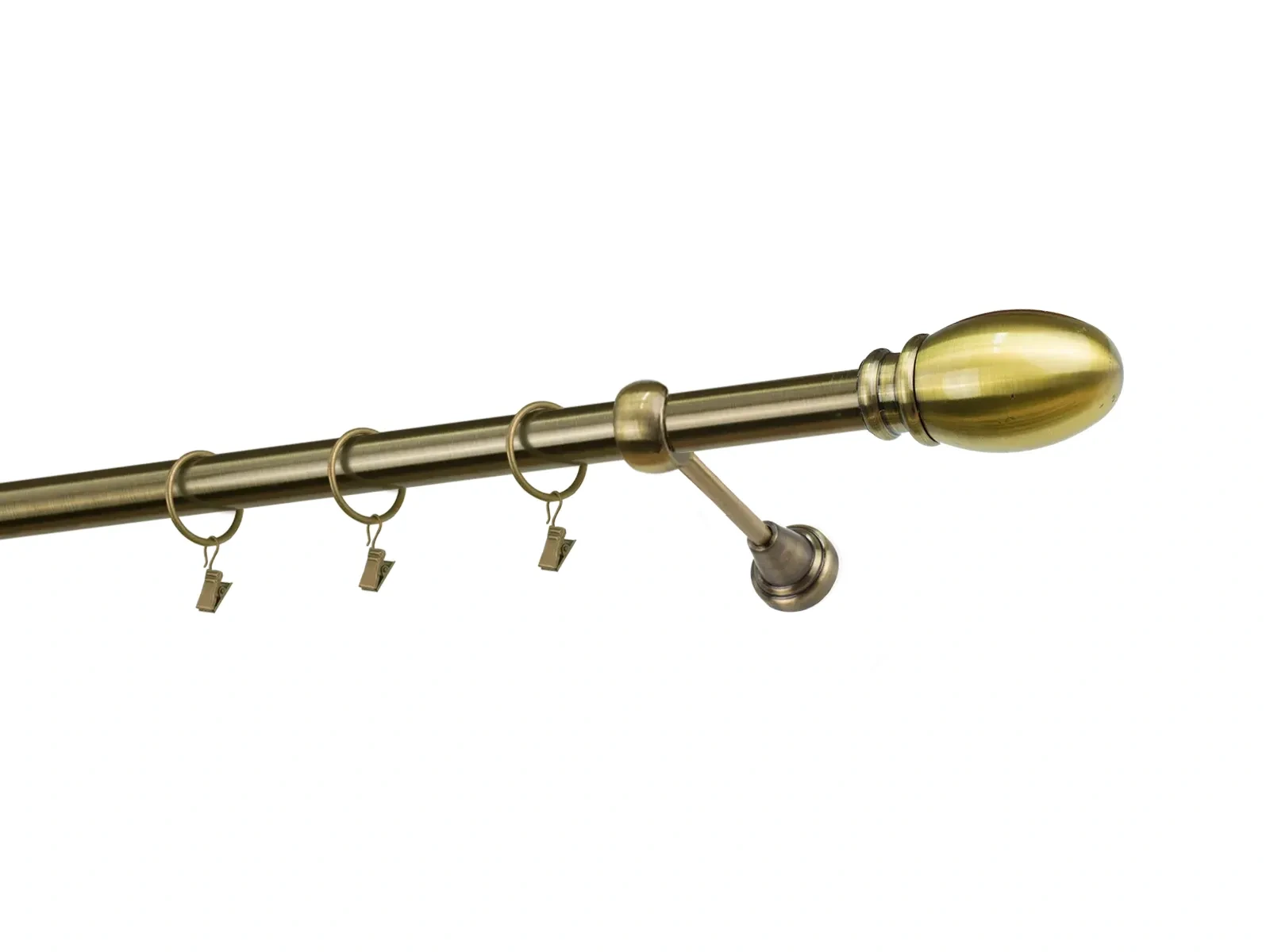 Jednořadá garnýž s povrchovou úpravou - odstín antik (matné zlato). Celokovová garnýž s kvalitní povrchovou úpravou - galvanické pokovování. Galvanické pokovování zabezpečuje vyšší povrchovou tvrdost, zvýšenú dolnost vůči poškrábání, hladký povrch. Dodávané jsou v kompletech.