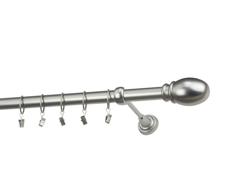 Jednořadá garnýž s povrchovou úpravou - odstín satin (matné stříbro). Celokovová garnýž s kvalitní povrchovou úpravou - galvanické pokovování. Galvanické pokovování zabezpečuje vyšší povrchovou tvrdost, zvýšenú dolnost vůči poškrábání, hladký povrch. Dodávané jsou v kompletech.