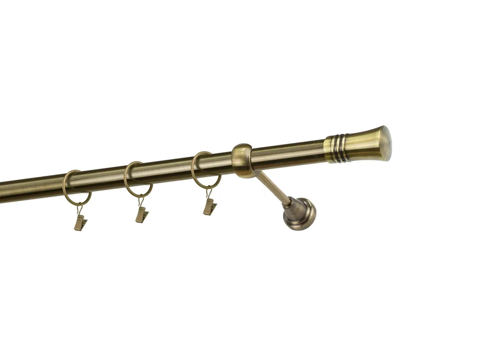 Jednořadá garnýž s povrchovou úpravou - odstín antik (matné zlato). Celokovová garnýž s kvalitní povrchovou úpravou - galvanické pokovování. Galvanické pokovování zabezpečuje vyšší povrchovou tvrdost, zvýšenú dolnost vůči poškrábání, hladký povrch. Dodávané jsou v kompletech.