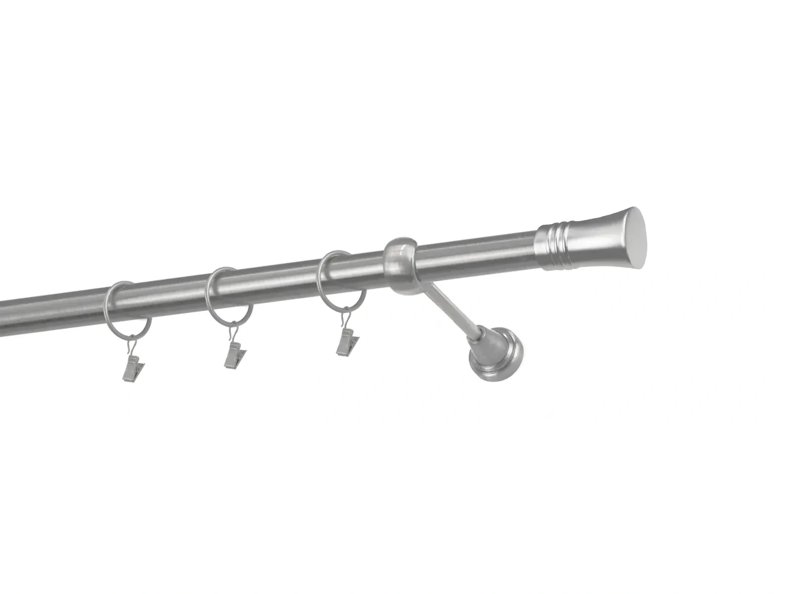 Délka 1600 mm - tyč 25mm - 1600mm - 1ks, držák - 2ks, koncovka - 2ks, kroužek se skřipcem - 15ks (při výběru parametru příslušenství s kroužky se skřipcem), šrouby a hmoždinky pro montáž