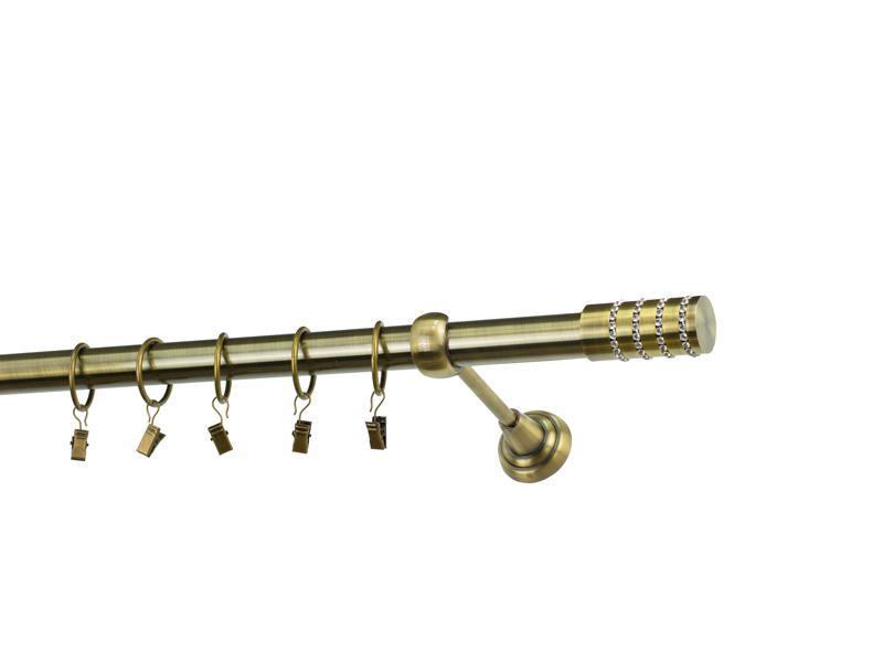 Jednořadá garnýž s povrchovou úpravou - odstín antik (matné zlato). Celokovová garnýž s kvalitní povrchovou úpravou - galvanické pokovování. Galvanické pokovování zabezpečuje vyšší povrchovou tvrdost, zvýšenú dolnost vůči poškrábání, hladký povrch. Dodávané jsou v kompletech.