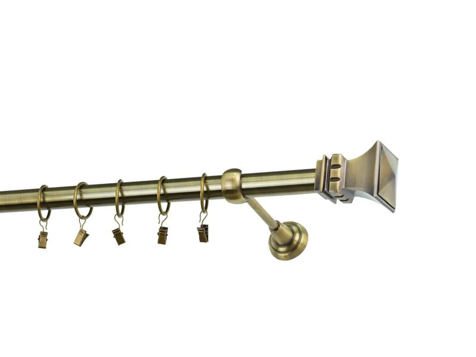 Jednořadá garnýž s povrchovou úpravou - odstín antik (matné zlato). Celokovová garnýž s kvalitní povrchovou úpravou - galvanické pokovování. Galvanické pokovování zabezpečuje vyšší povrchovou tvrdost, zvýšenú dolnost vůči poškrábání, hladký povrch. Dodávané jsou v kompletech.