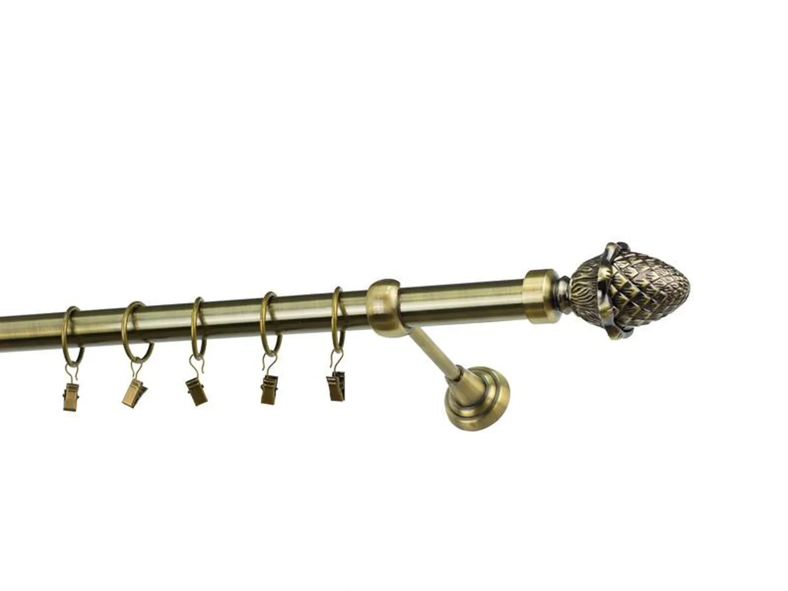 Jednořadá garnýž s povrchovou úpravou - odstín antik (matné zlato). Celokovová garnýž s kvalitní povrchovou úpravou - galvanické pokovování. Galvanické pokovování zabezpečuje vyšší povrchovou tvrdost, zvýšenú dolnost vůči poškrábání, hladký povrch. Dodávané jsou v kompletech.