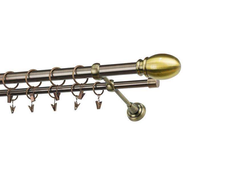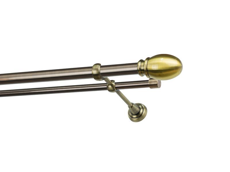 Dvouřadá garnýž s povrchovou úpravou - odstín antik (matné zlato). Celokovová garnýž s kvalitní povrchovou úpravou - galvanické pokovování. Galvanické pokovování zabezpečuje vyšší povrchovou tvrdost, zvýšenú dolnost vůči poškrábání, hladký povrch. Dodávané jsou v kompletech.