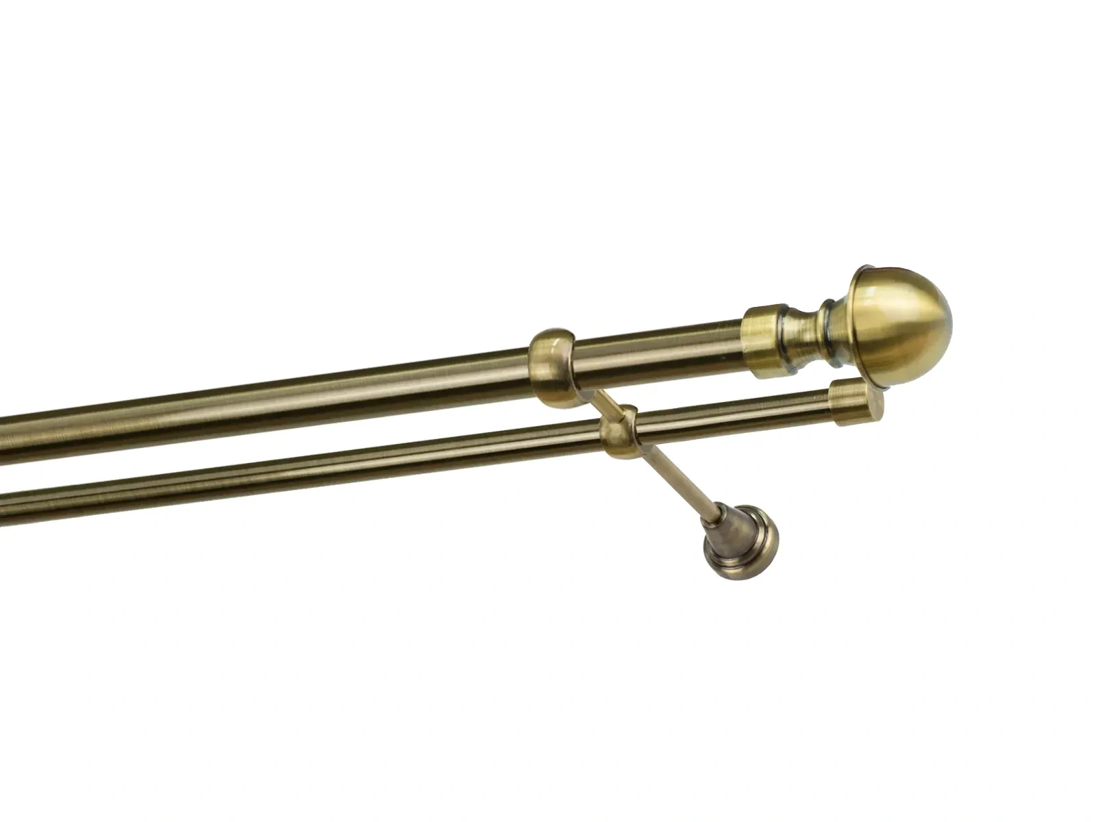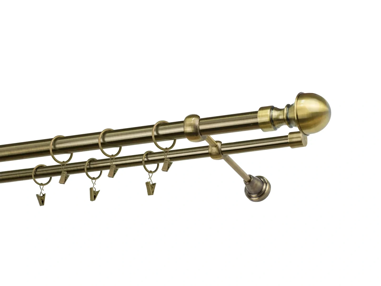 Dvouřadá garnýž s povrchovou úpravou - odstín antik (matné zlato). Celokovová garnýž s kvalitní povrchovou úpravou - galvanické pokovování. Galvanické pokovování zabezpečuje vyšší povrchovou tvrdost, zvýšenú dolnost vůči poškrábání, hladký povrch. Dodávané jsou v kompletech.