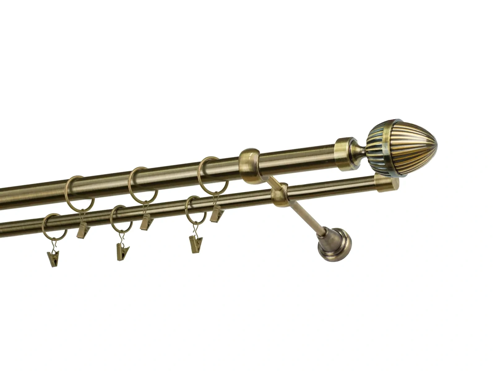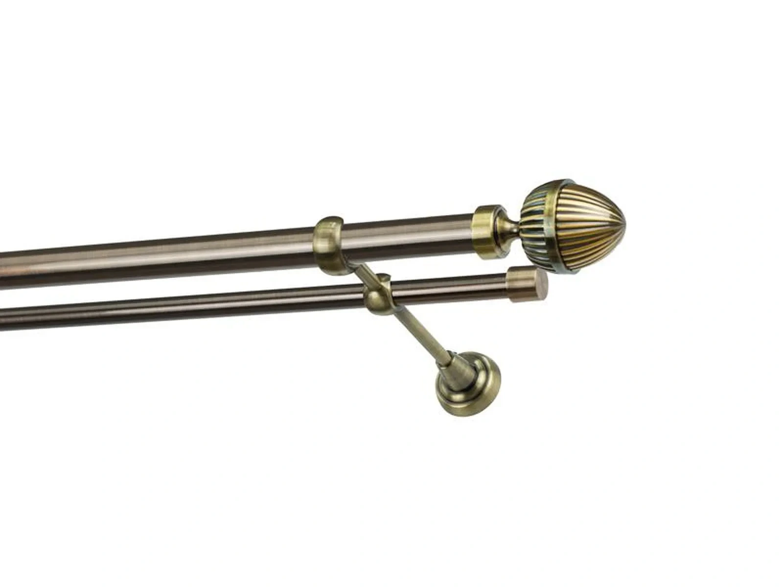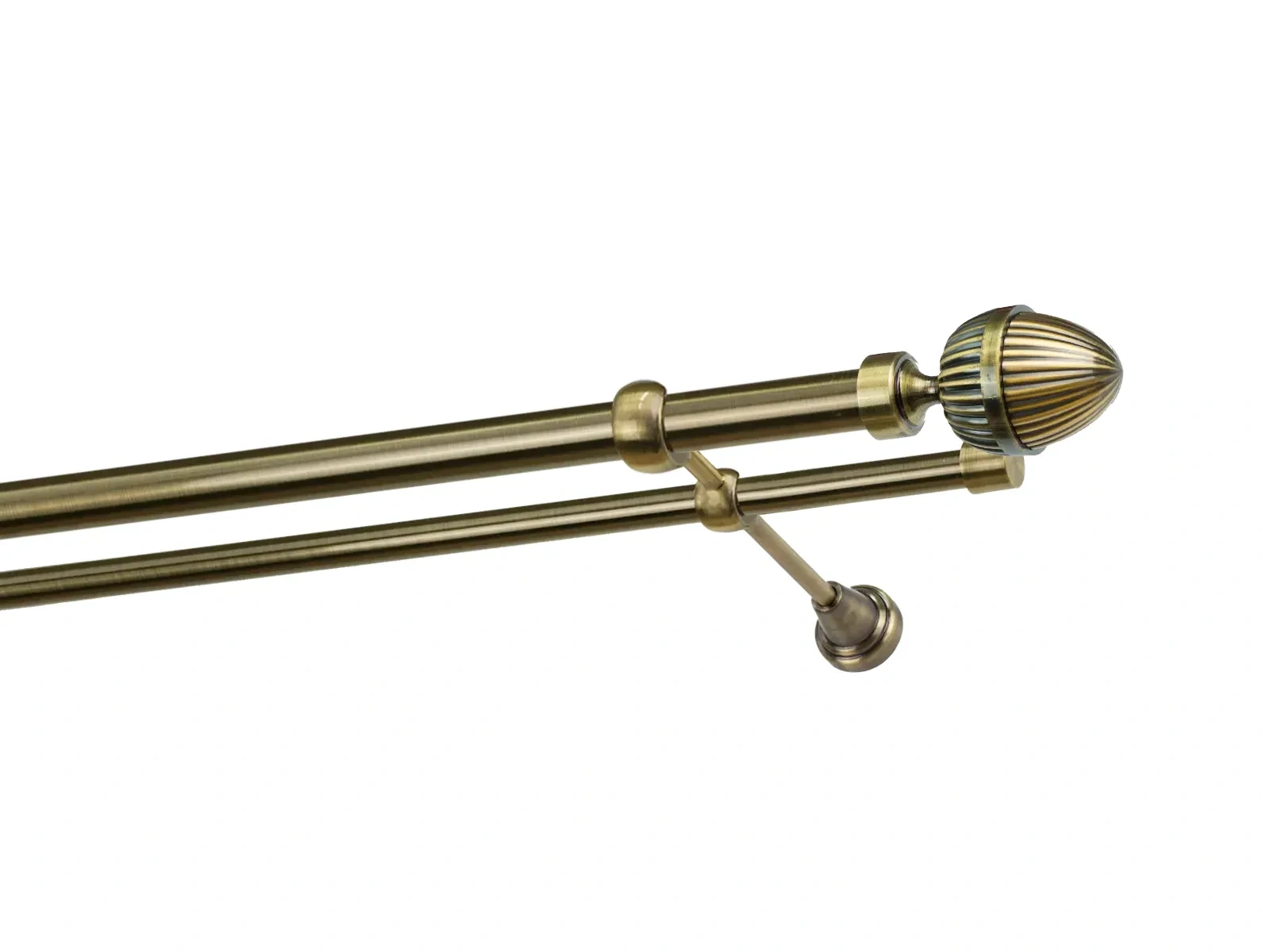 Dvouřadá garnýž s povrchovou úpravou - odstín antik (matné zlato). Celokovová garnýž s kvalitní povrchovou úpravou - galvanické pokovování. Galvanické pokovování zabezpečuje vyšší povrchovou tvrdost, zvýšenú dolnost vůči poškrábání, hladký povrch. Dodávané jsou v kompletech.