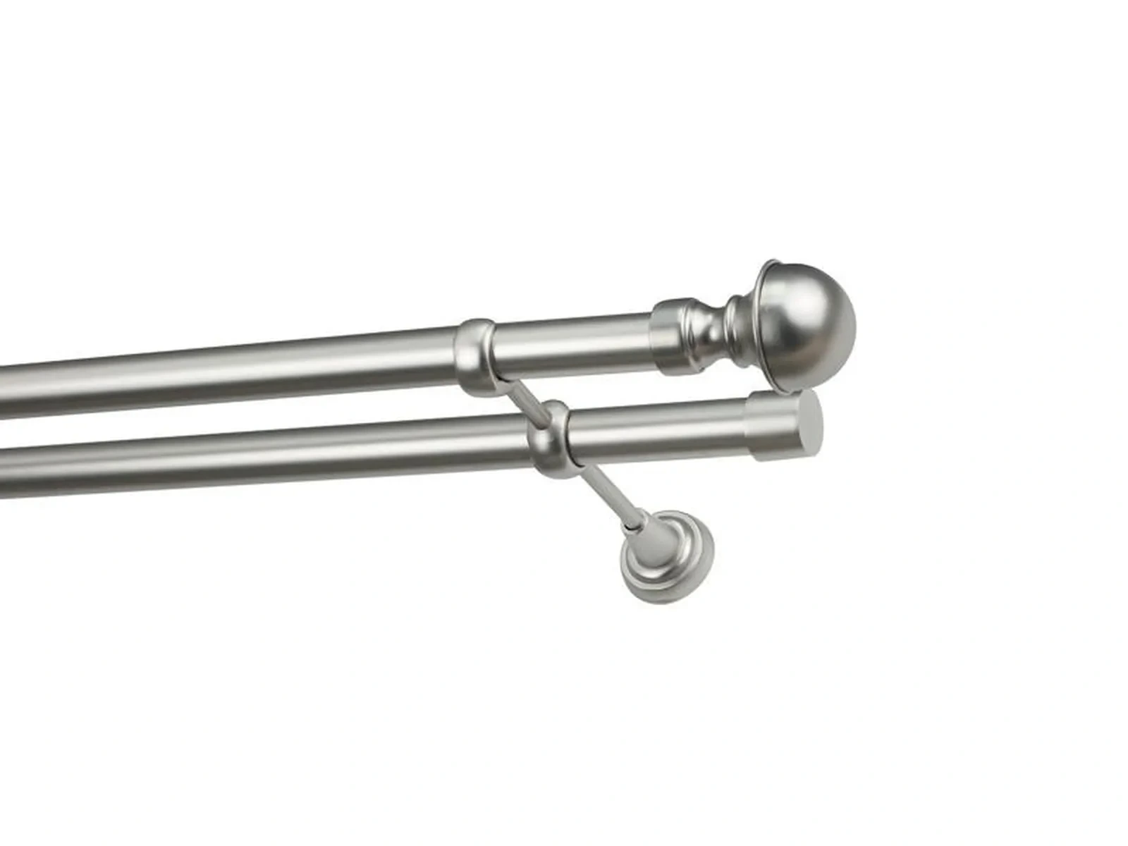 Dvouřadá garnýž s povrchovou úpravou - odstín satin (matné stříbro). Celokovová garnýž s kvalitní povrchovou úpravou - galvanické pokovování. Galvanické pokovování zabezpečuje vyšší povrchovou tvrdost, zvýšenú dolnost vůči poškrábání, hladký povrch. Dodávané jsou v kompletech.