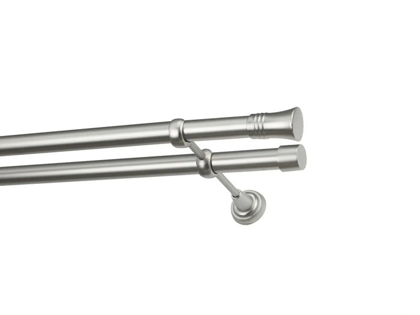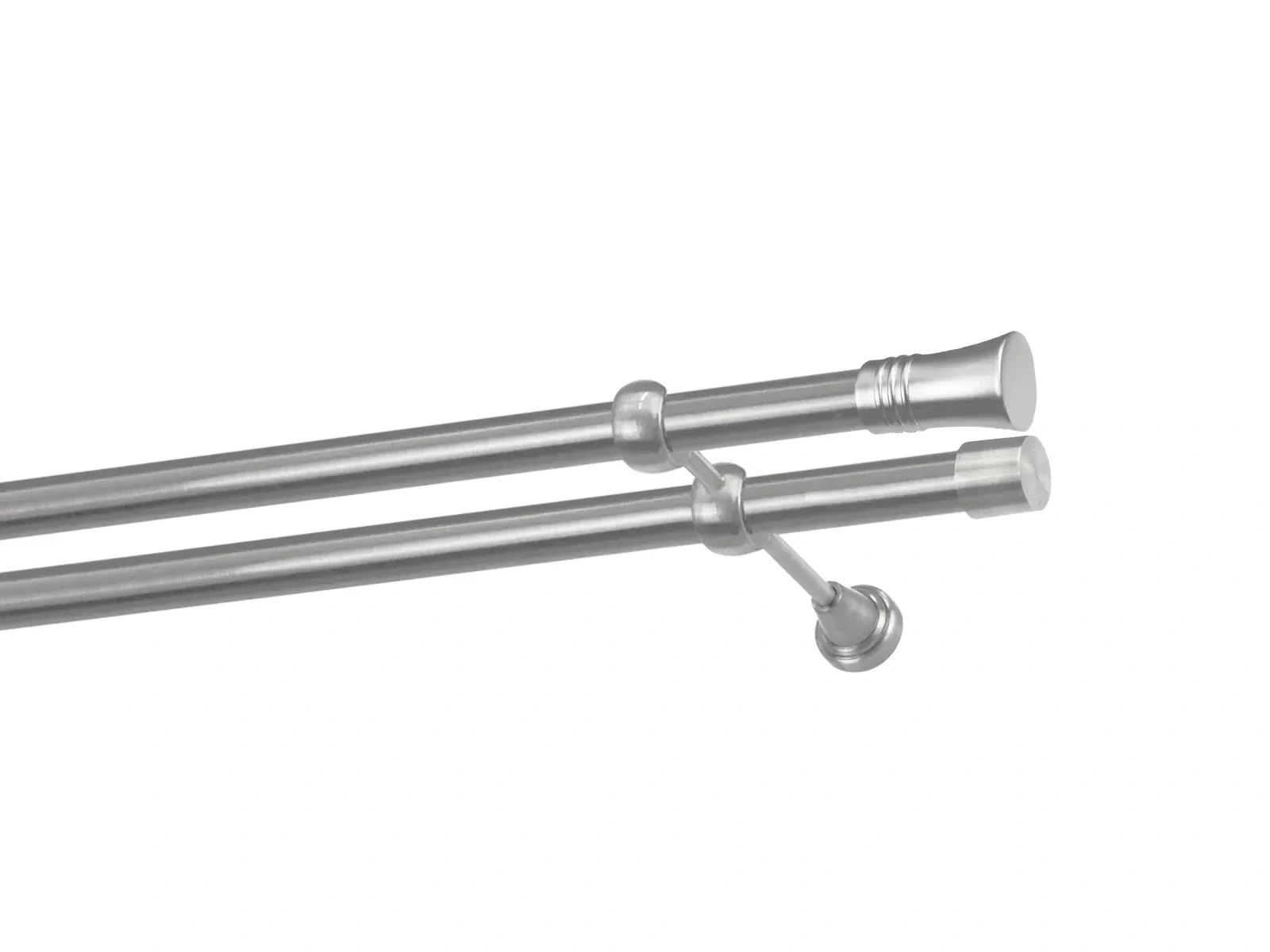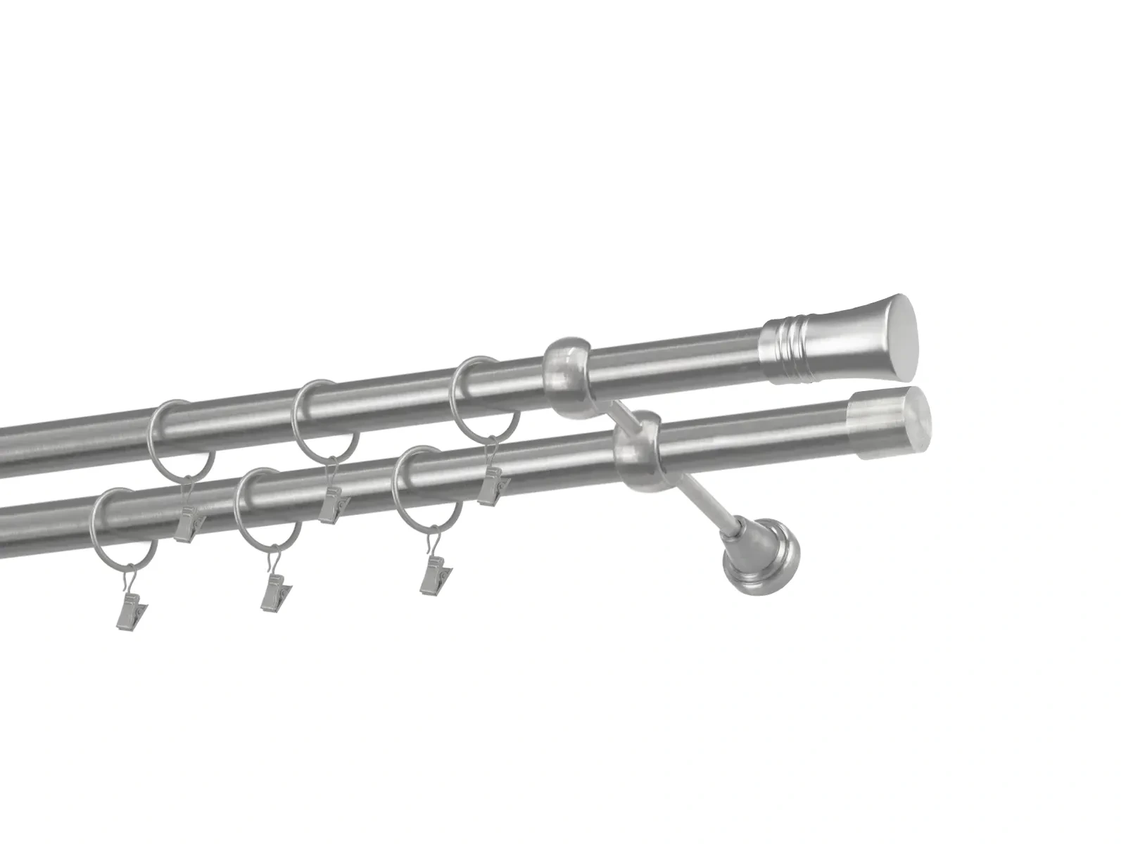 Dvouřadá garnýž s povrchovou úpravou - odstín satin (matné stříbro). Celokovová garnýž s kvalitní povrchovou úpravou - galvanické pokovování. Galvanické pokovování zabezpečuje vyšší povrchovou tvrdost, zvýšenú dolnost vůči poškrábání, hladký povrch. Dodávané jsou v kompletech.
