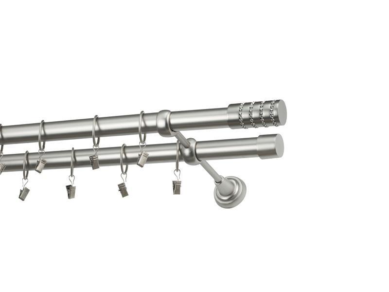 Dvouřadá garnýž s povrchovou úpravou - odstín satin (matné stříbro). Celokovová garnýž s kvalitní povrchovou úpravou - galvanické pokovování. Galvanické pokovování zabezpečuje vyšší povrchovou tvrdost, zvýšenú dolnost vůči poškrábání, hladký povrch. Dodávané jsou v kompletech.