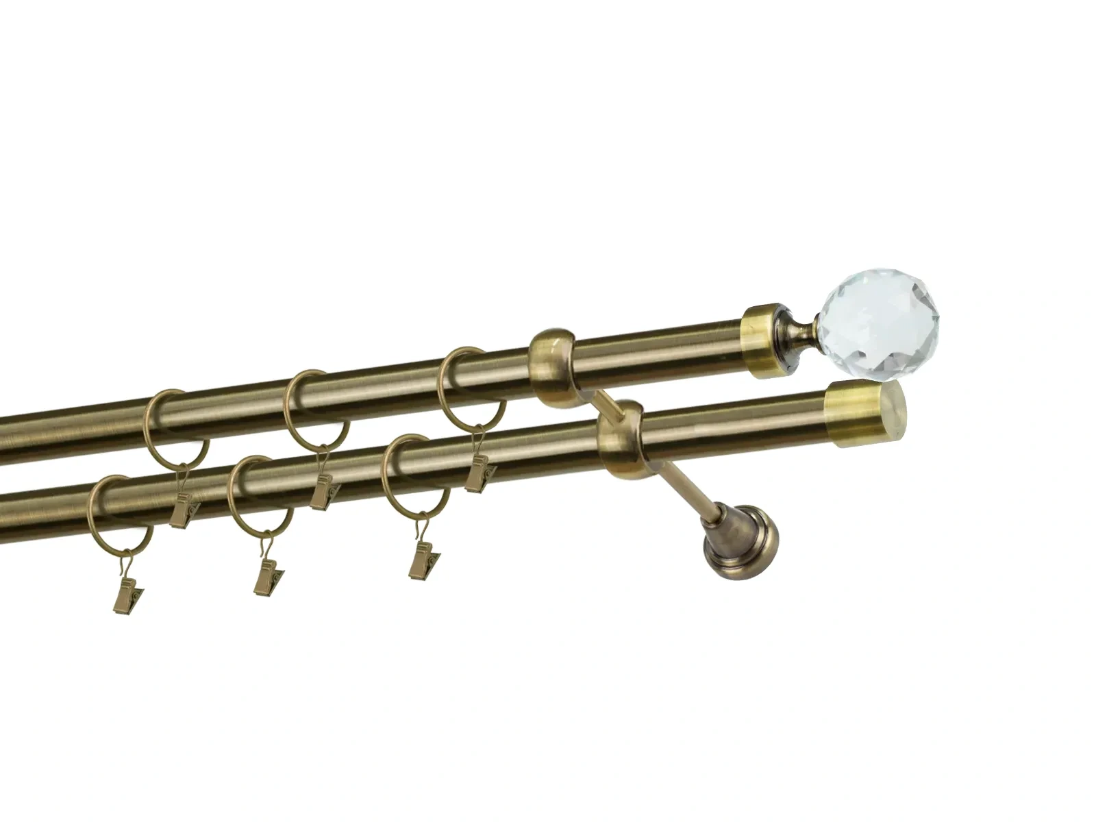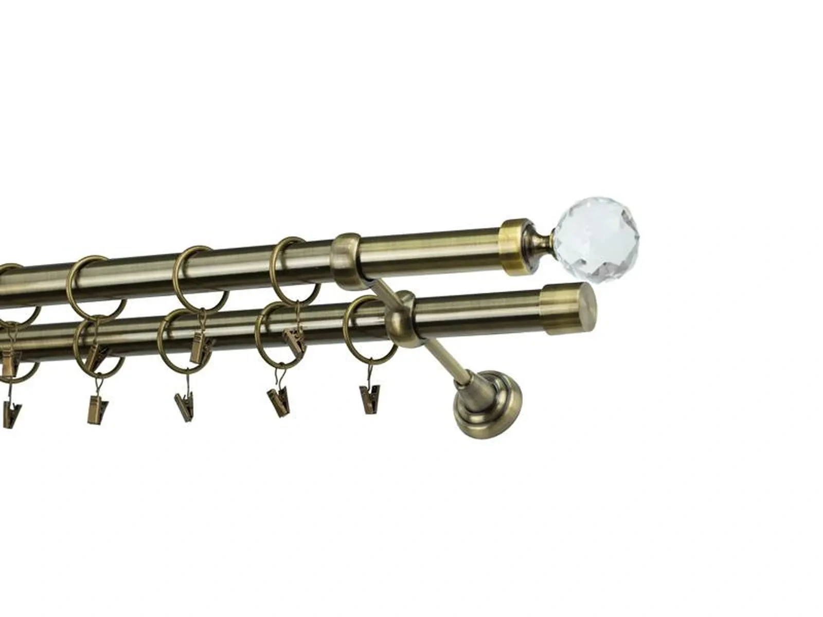 Dvouřadá garnýž s povrchovou úpravou - odstín antik (matné zlato). Celokovová garnýž s kvalitní povrchovou úpravou - galvanické pokovování. Galvanické pokovování zabezpečuje vyšší povrchovou tvrdost, zvýšenú dolnost vůči poškrábání, hladký povrch. Dodávané jsou v kompletech.