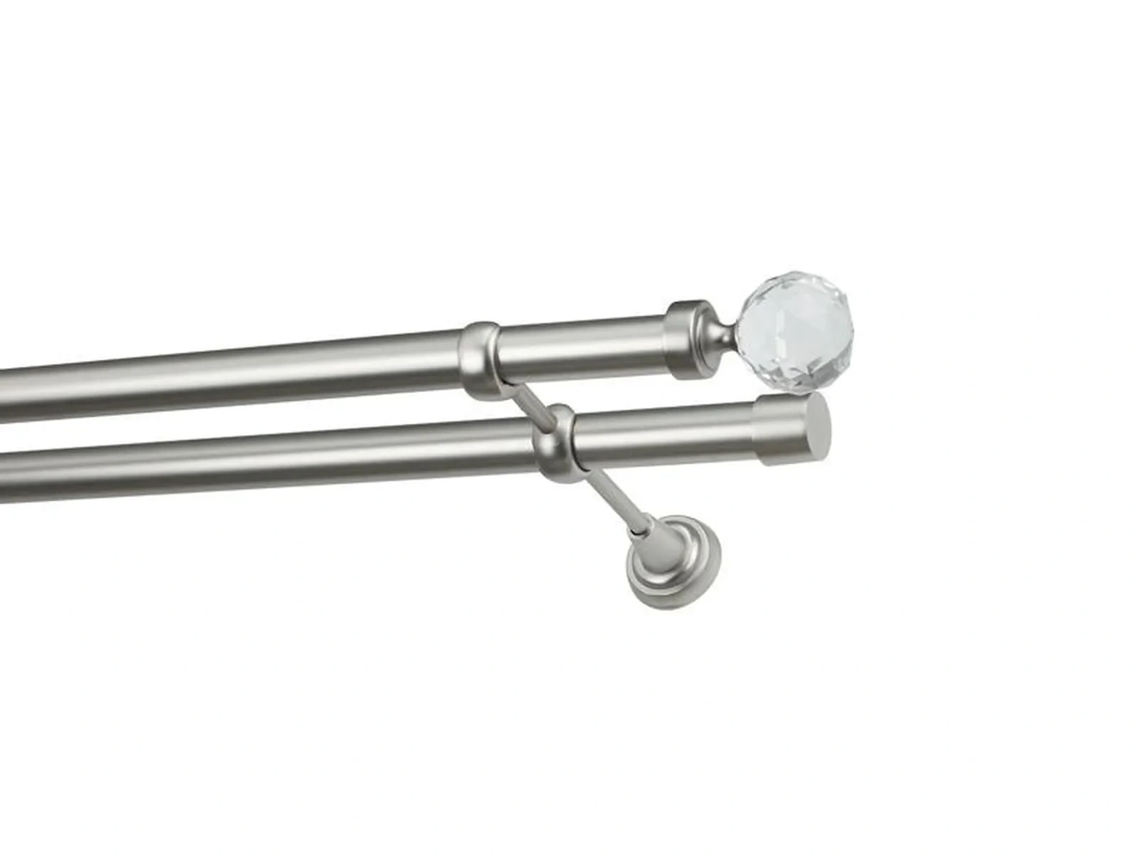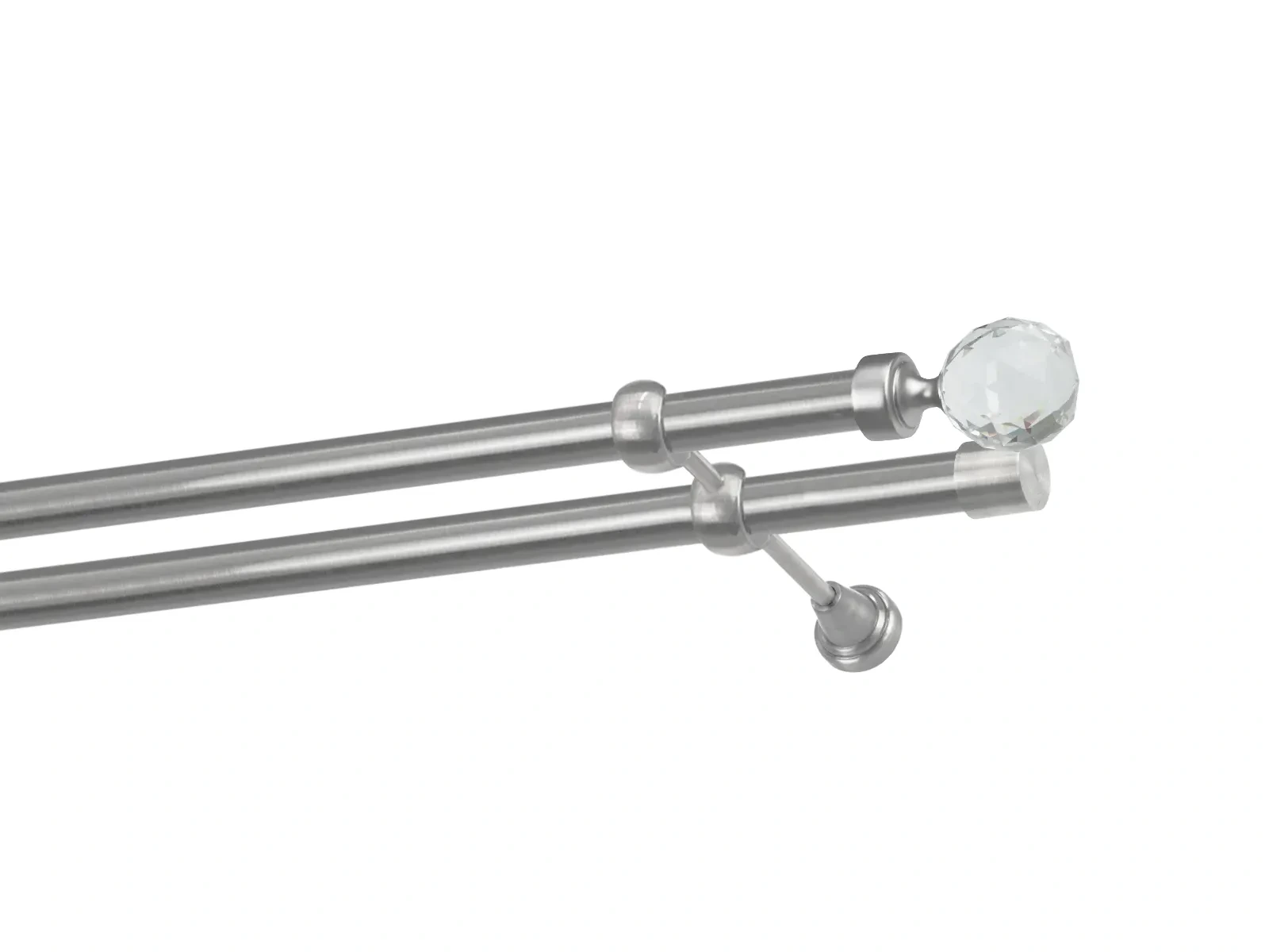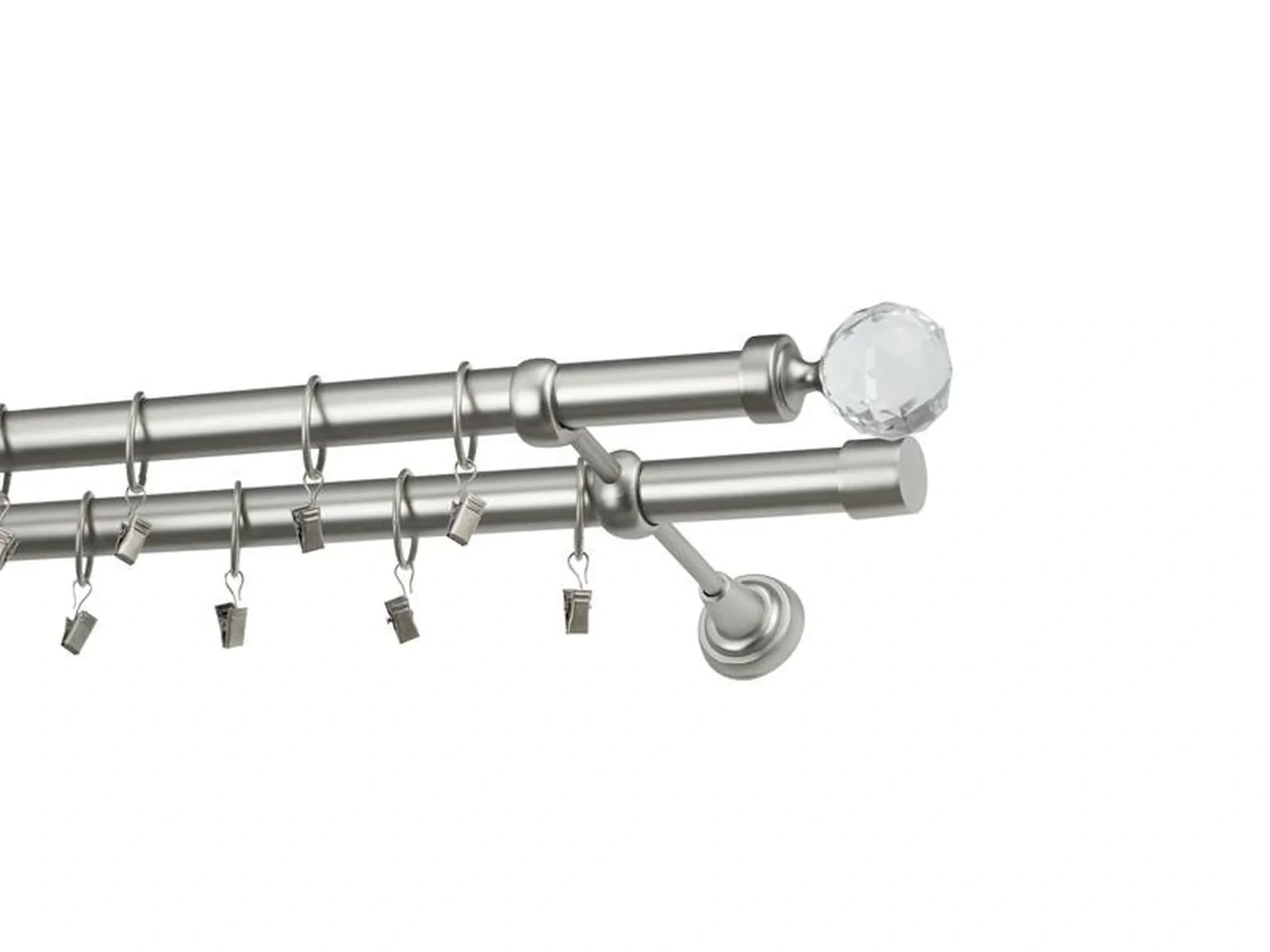 Dvouřadá garnýž s povrchovou úpravou - odstín satin (matné stříbro). Celokovová garnýž s kvalitní povrchovou úpravou - galvanické pokovování. Galvanické pokovování zabezpečuje vyšší povrchovou tvrdost, zvýšenú dolnost vůči poškrábání, hladký povrch. Dodávané jsou v kompletech.