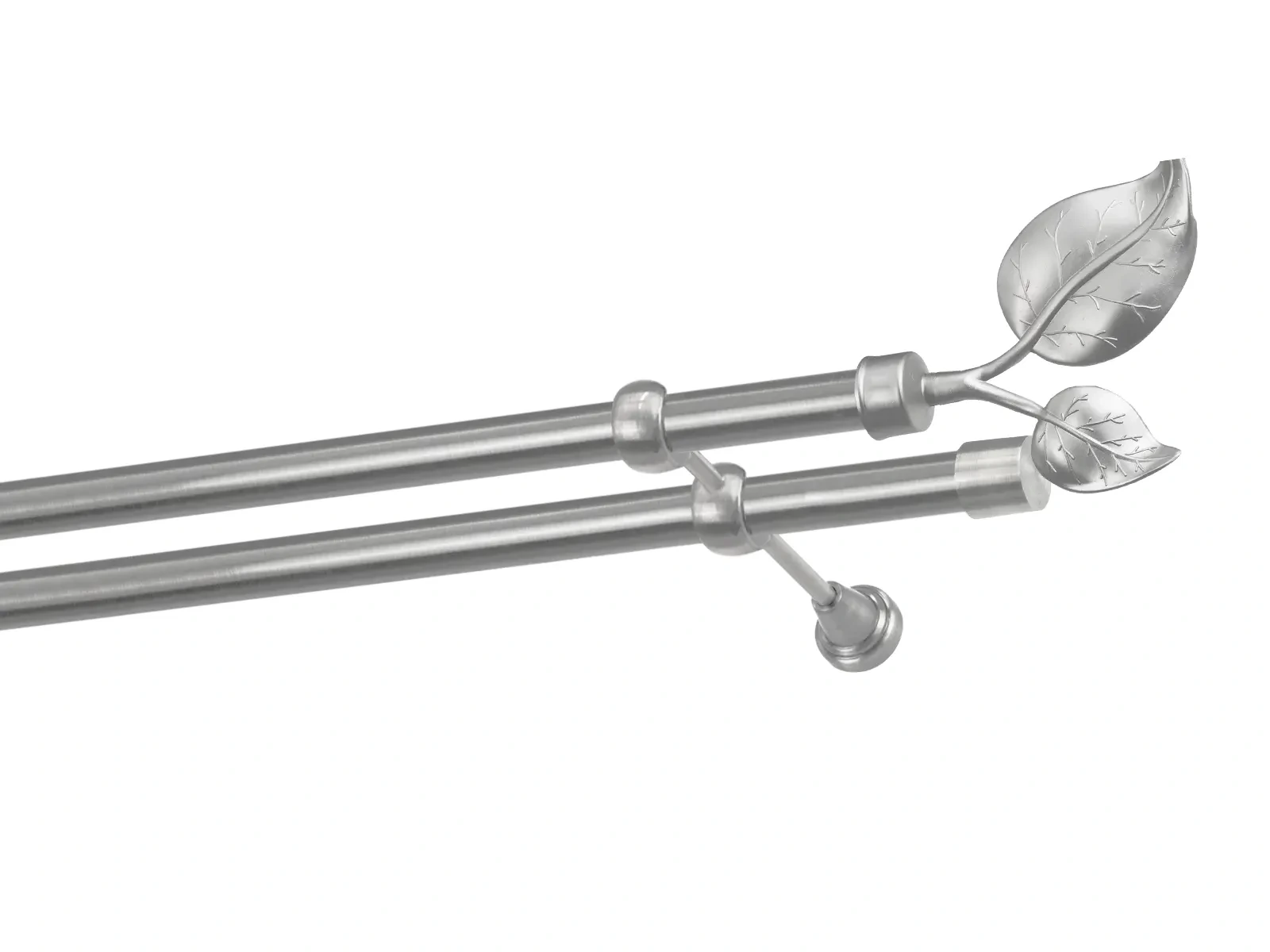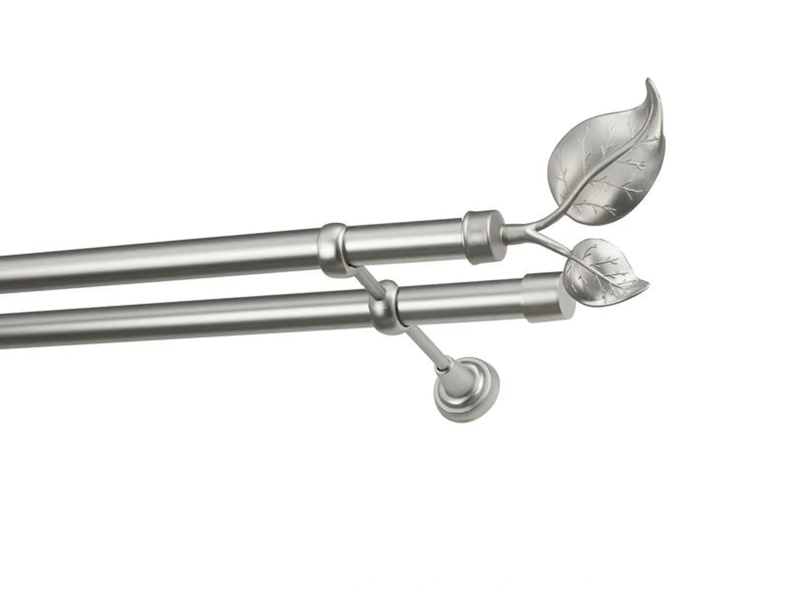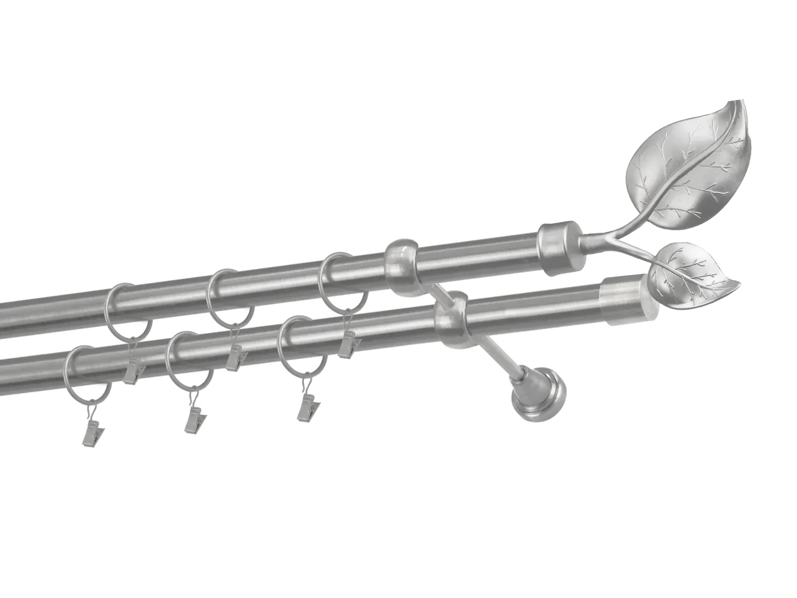 Dvouřadá garnýž s povrchovou úpravou - odstín satin (matné stříbro). Celokovová garnýž s kvalitní povrchovou úpravou - galvanické pokovování. Galvanické pokovování zabezpečuje vyšší povrchovou tvrdost, zvýšenú dolnost vůči poškrábání, hladký povrch. Dodávané jsou v kompletech.