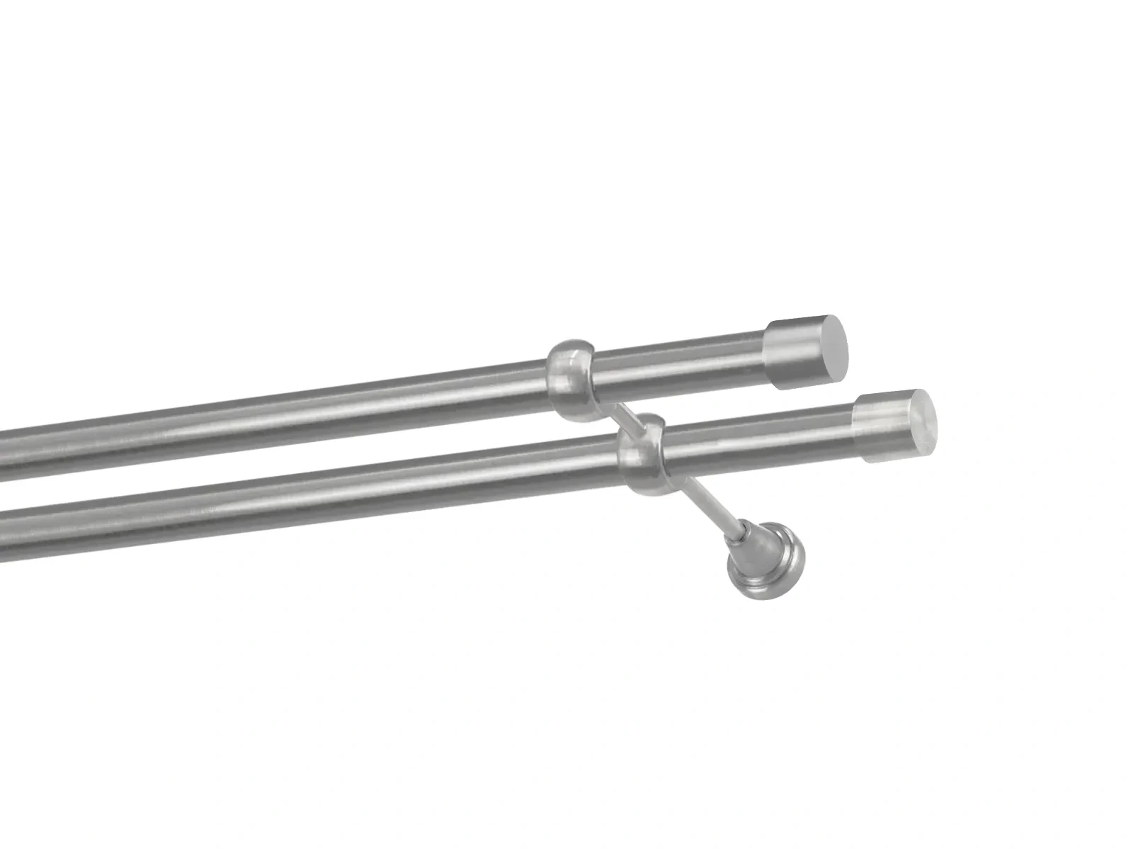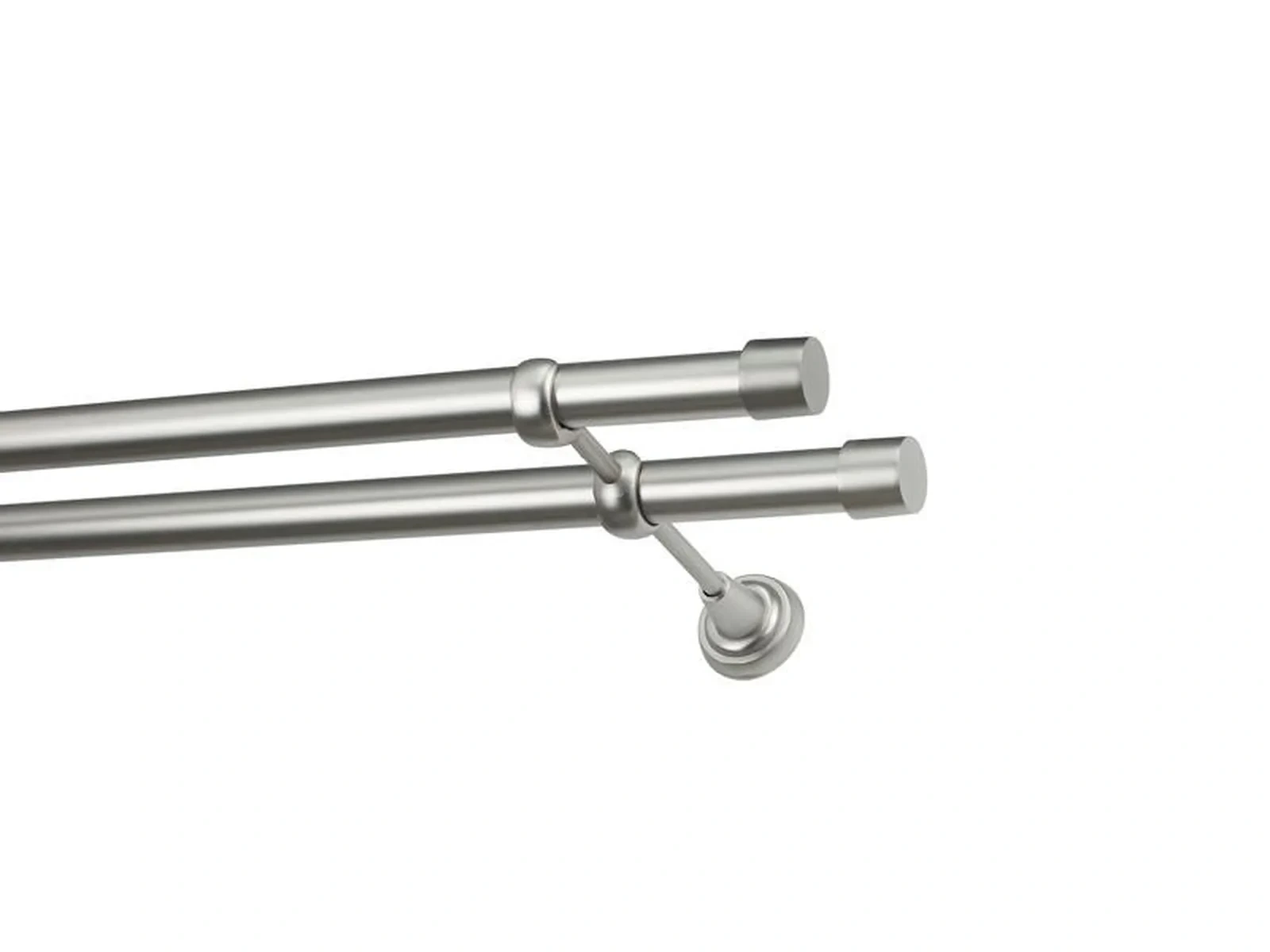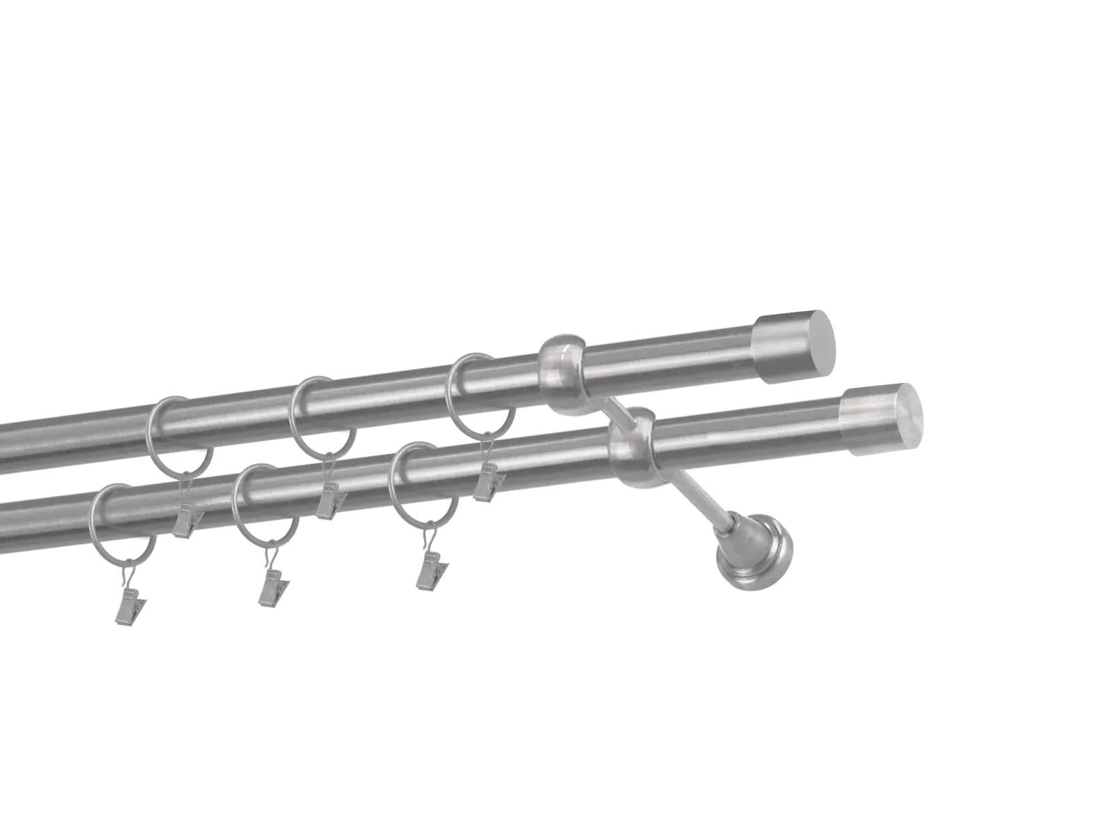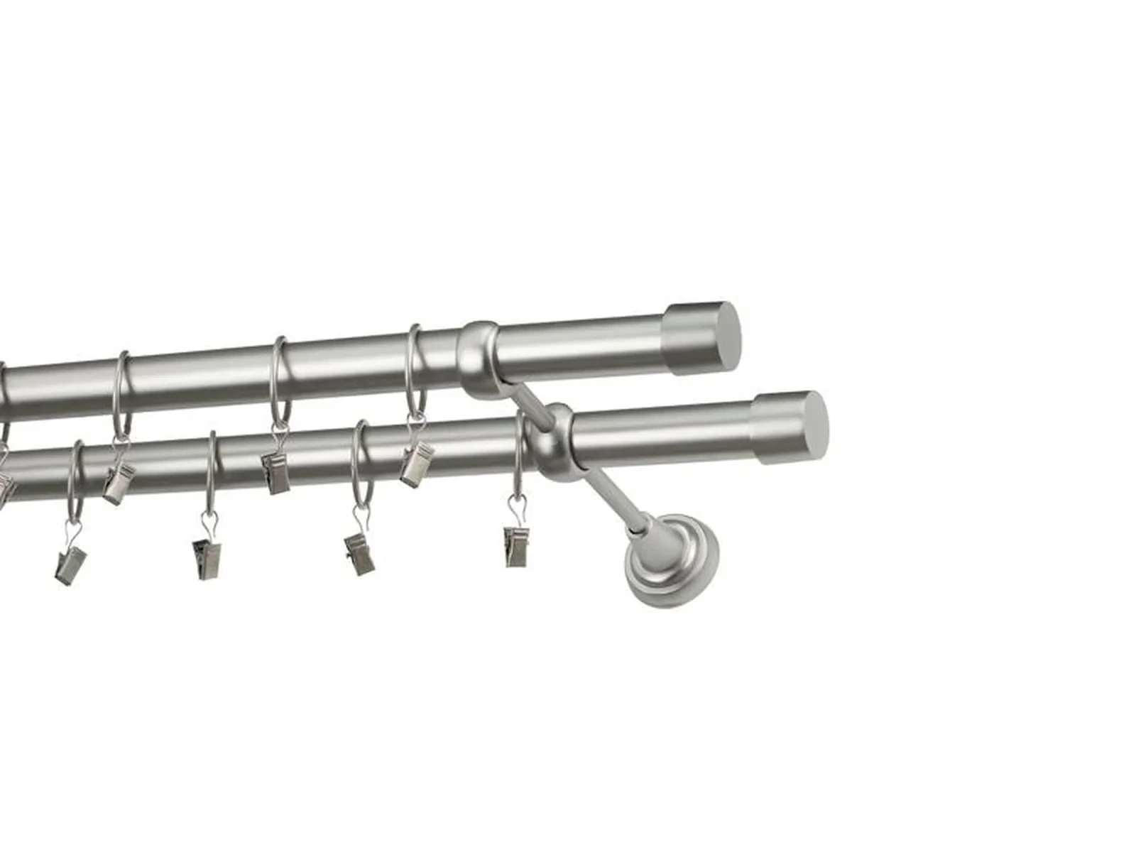 Dvouřadá garnýž s povrchovou úpravou - odstín satin (matné stříbro). Celokovová garnýž s kvalitní povrchovou úpravou - galvanické pokovování. Galvanické pokovování zabezpečuje vyšší povrchovou tvrdost, zvýšenú dolnost vůči poškrábání, hladký povrch. Dodávané jsou v kompletech.
